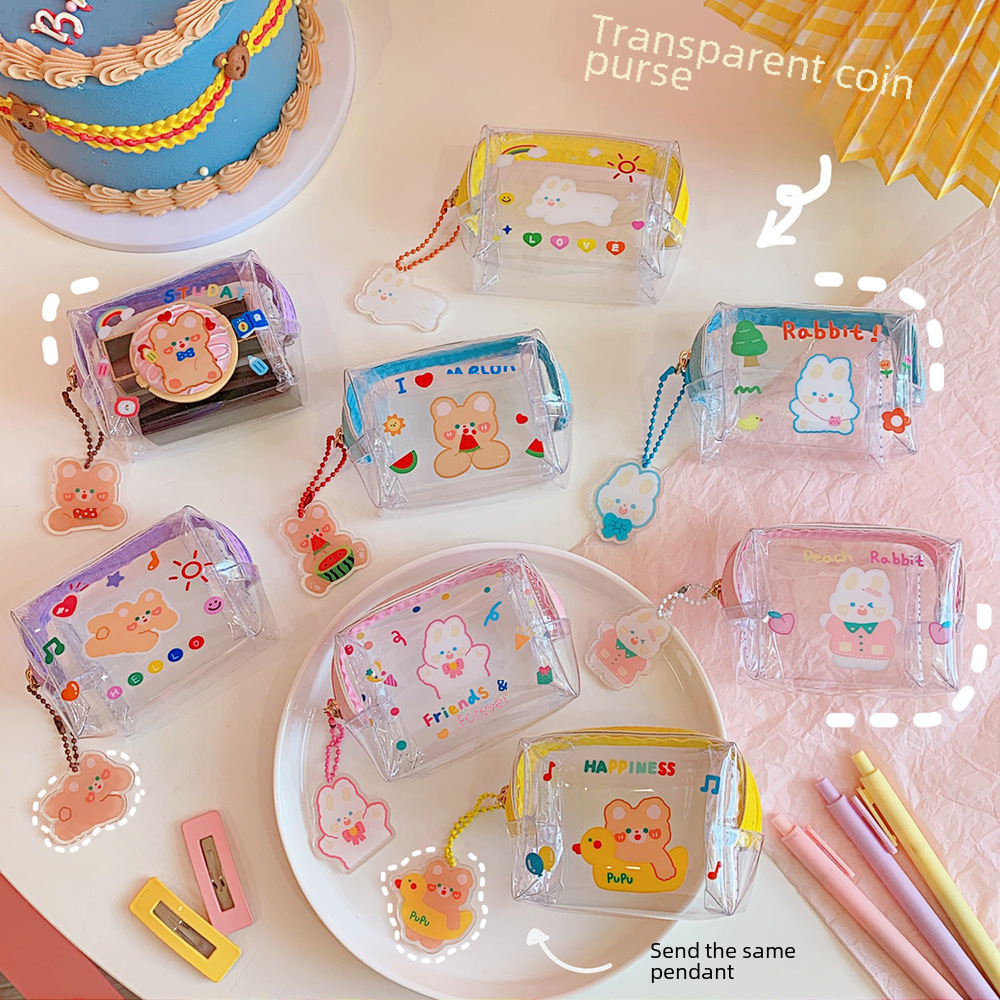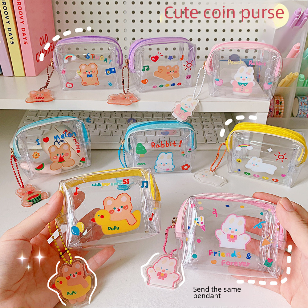 | nameOriginal | Cute ins Cartoon Portable Coin Purse Cosmetic Bag Transparent Zipper Waterproof Small Jelly Bag Student Storage Bag |