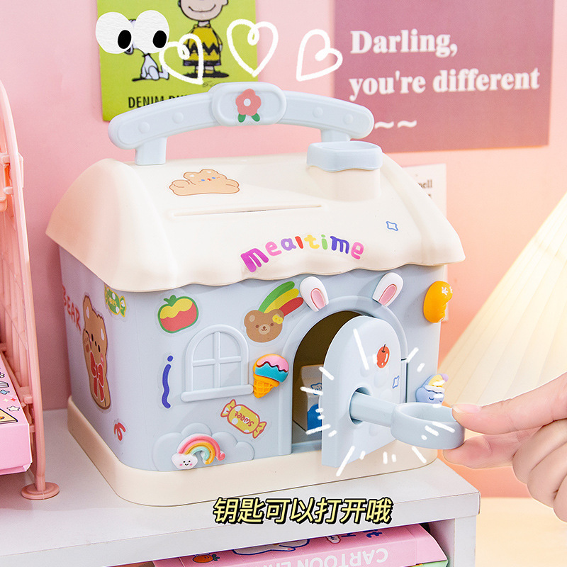 Cute Internet Popular Small House Piggy Bank Children's Large Piggy Bank with Lock Cashbox Children's Gift Student Prizes