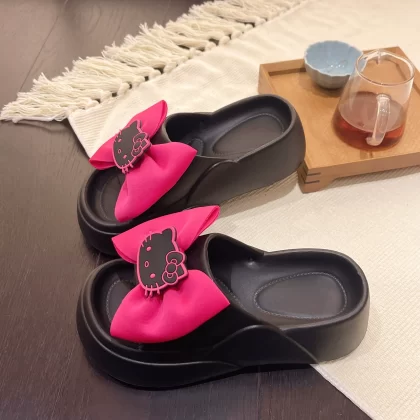 | nameOriginal | Cute Kitty cartoon flip flops with thick bottom bow |
