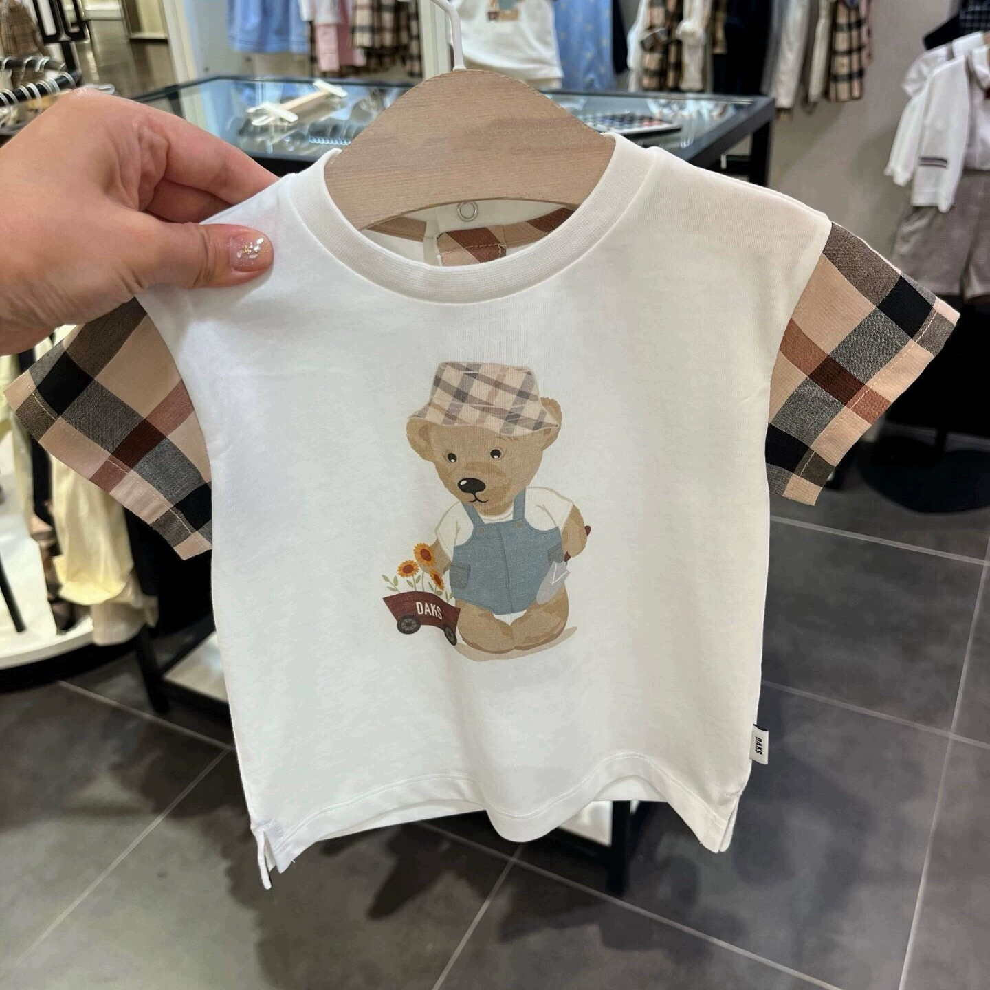 | nameOriginal | Cute Korean round neck plaid patchwork short-sleeved children's clothing |