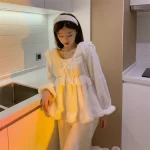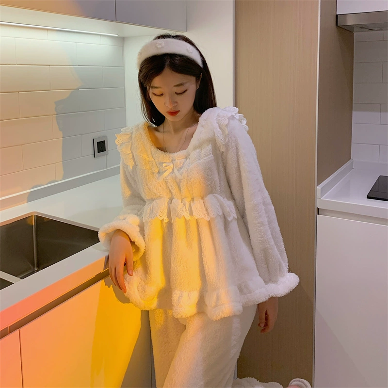 | nameOriginal | Cute lace coral velvet pajamas for women 2024 new autumn and winter plus velvet thickened plush warm home clothes |
