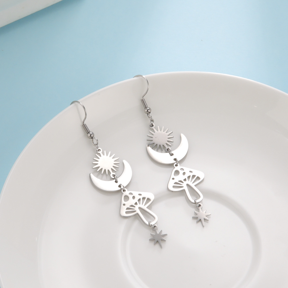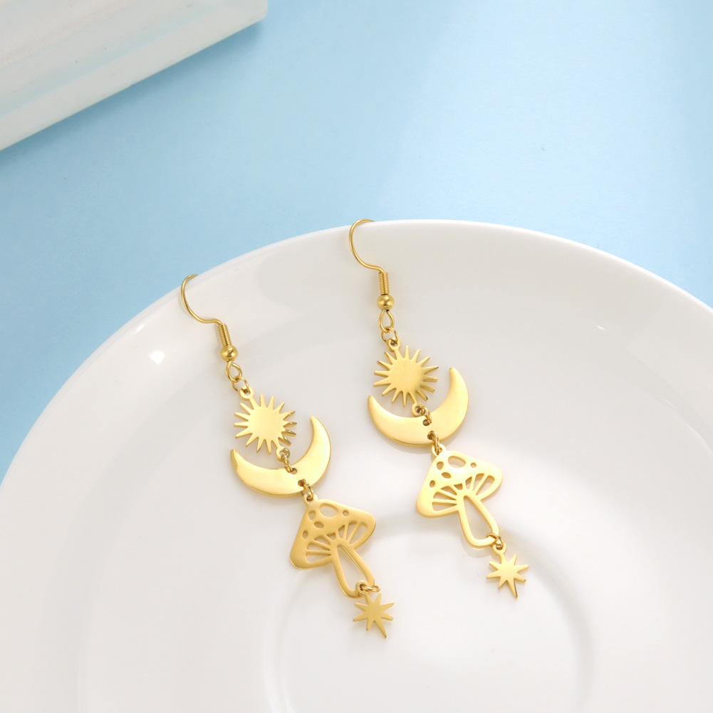 | nameOriginal | Cute Light Luxury High Fashion Earrings Sun Moon Stars Mushroom Earrings Cross Border New Product |