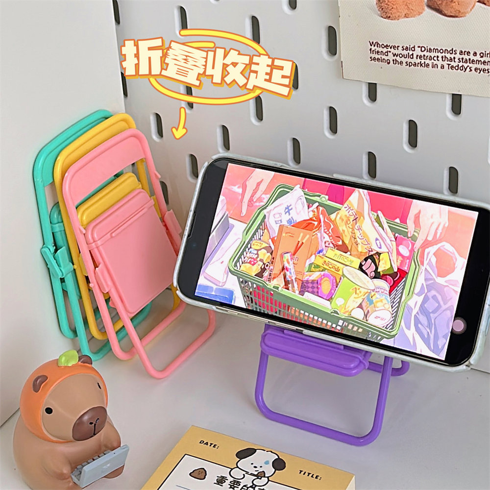 | nameOriginal | Cute little chair mobile phone stand creative desktop mobile phone stand foldable live TV lazy people chasing drama props |