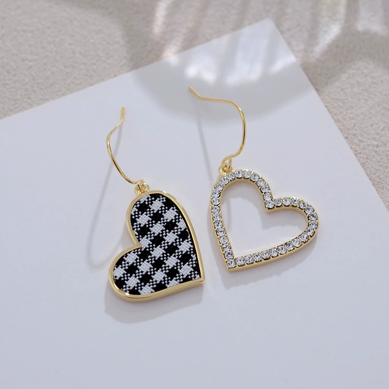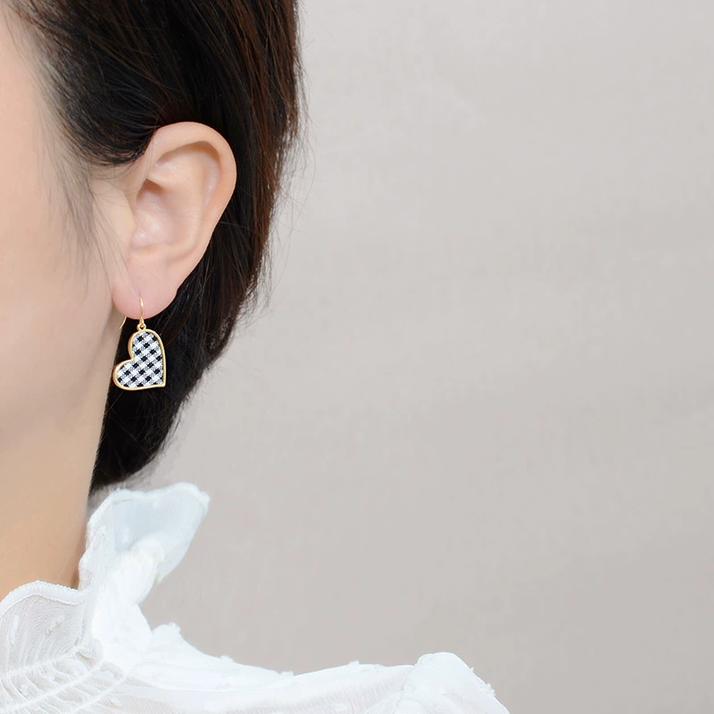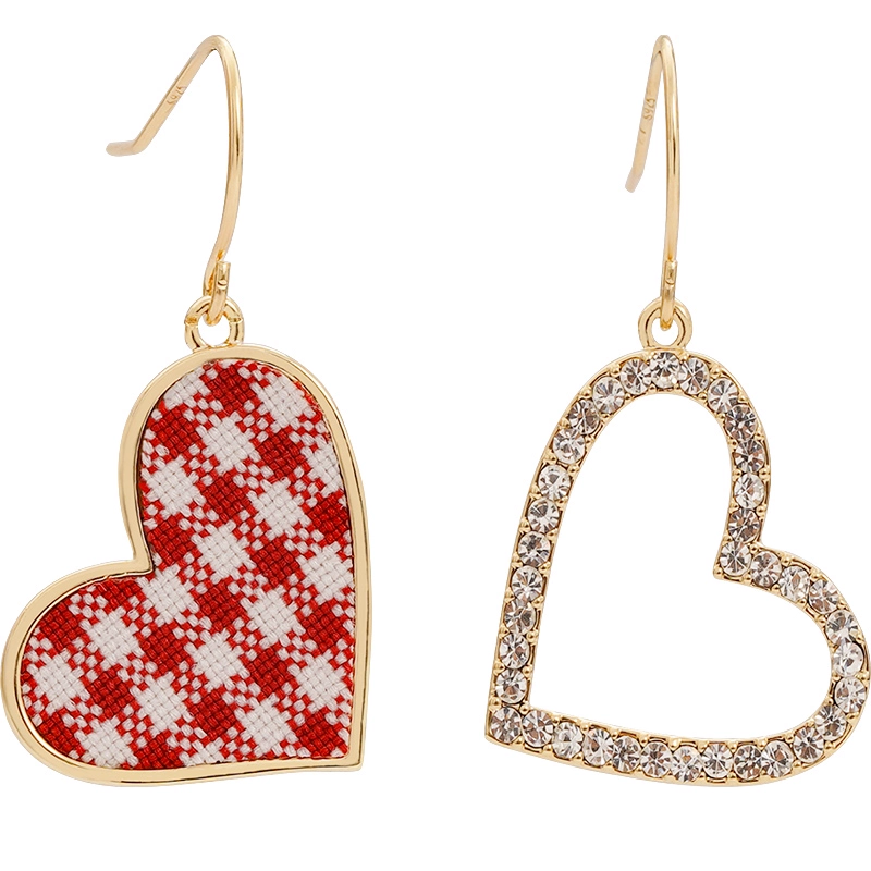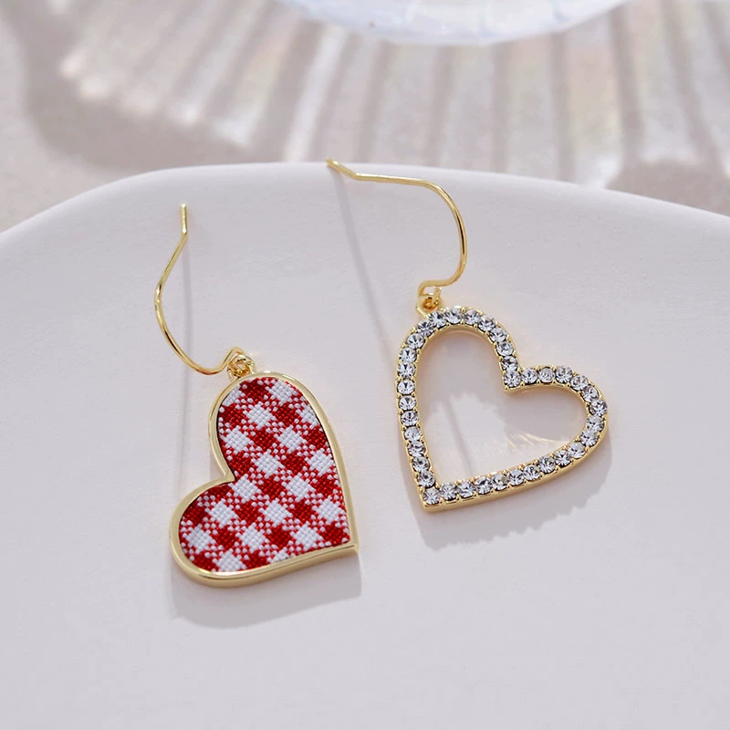 | nameOriginal | Cute little fresh earrings plaid peach heart asymmetrical niche design earrings high-end personalized fabric earrings for women |