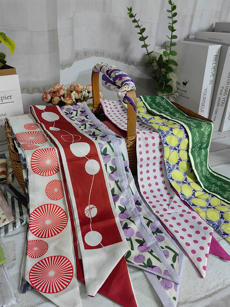 | nameOriginal | Cute little silk scarf with long decorative ribbons for women to tie their hair |