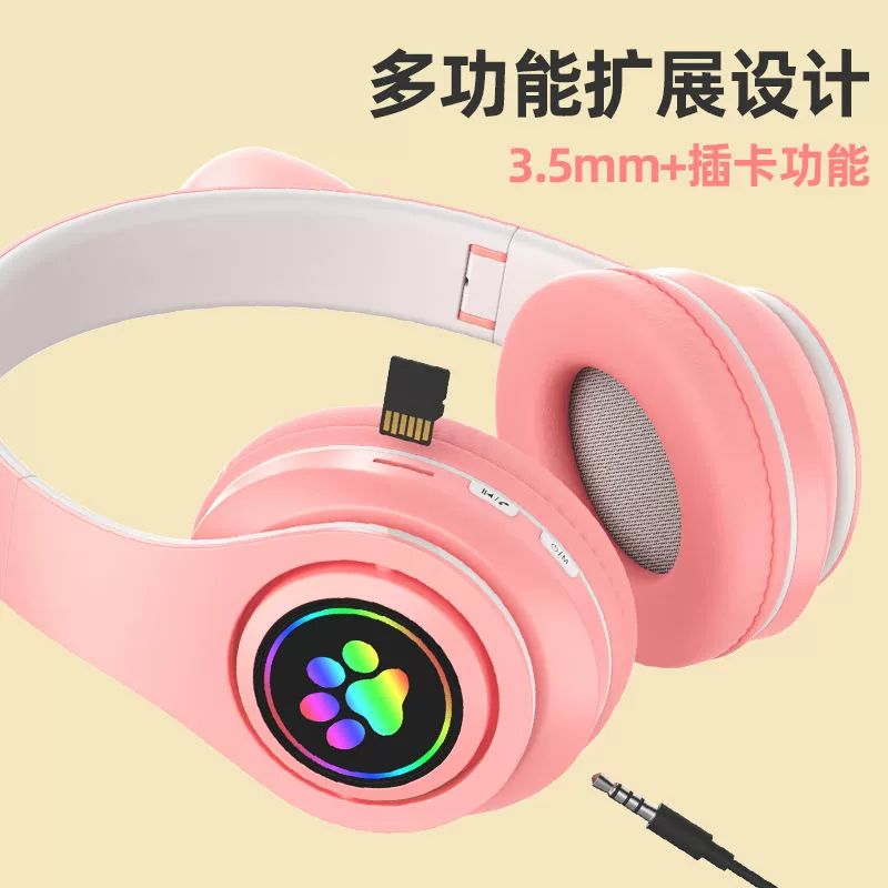 | nameOriginal | Cute luminous kitten ears Bluetooth headset head-mounted wireless gaming e-sports girls with good looks and earphones |