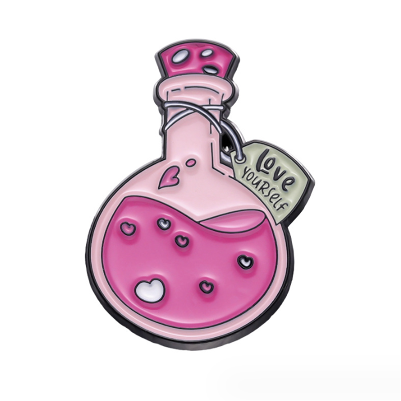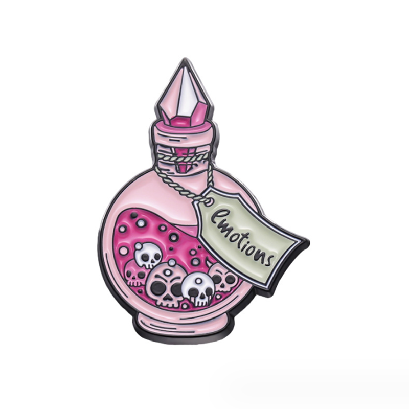 | nameOriginal | Cute magic medicine bottle badge, Japanese and Korean pink girl heart medal, skull cartoon metal badge jewelry |