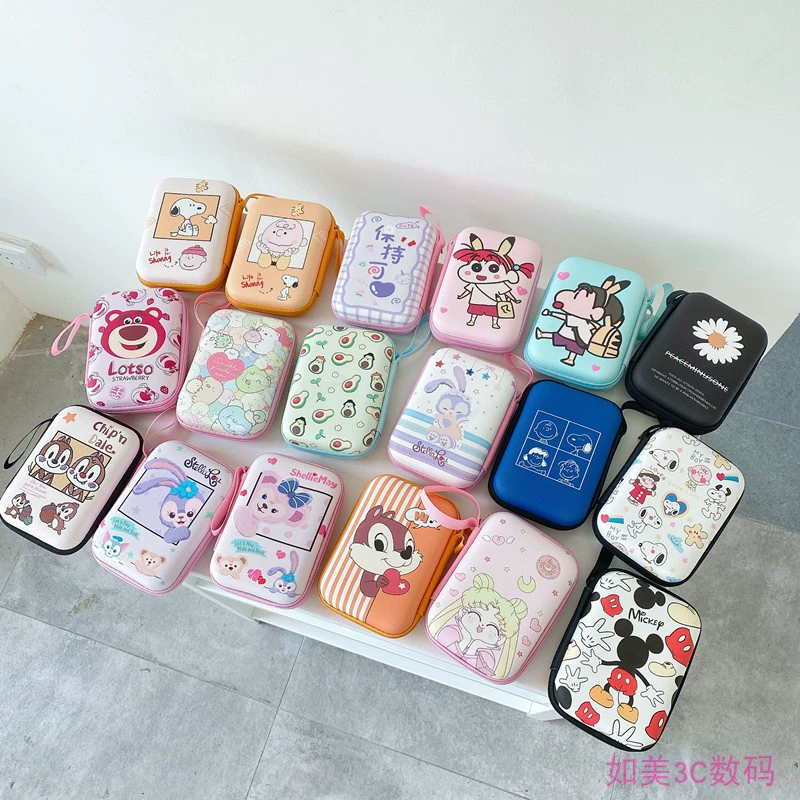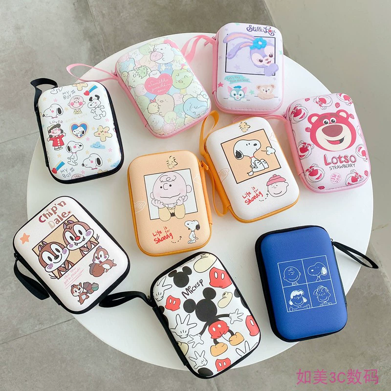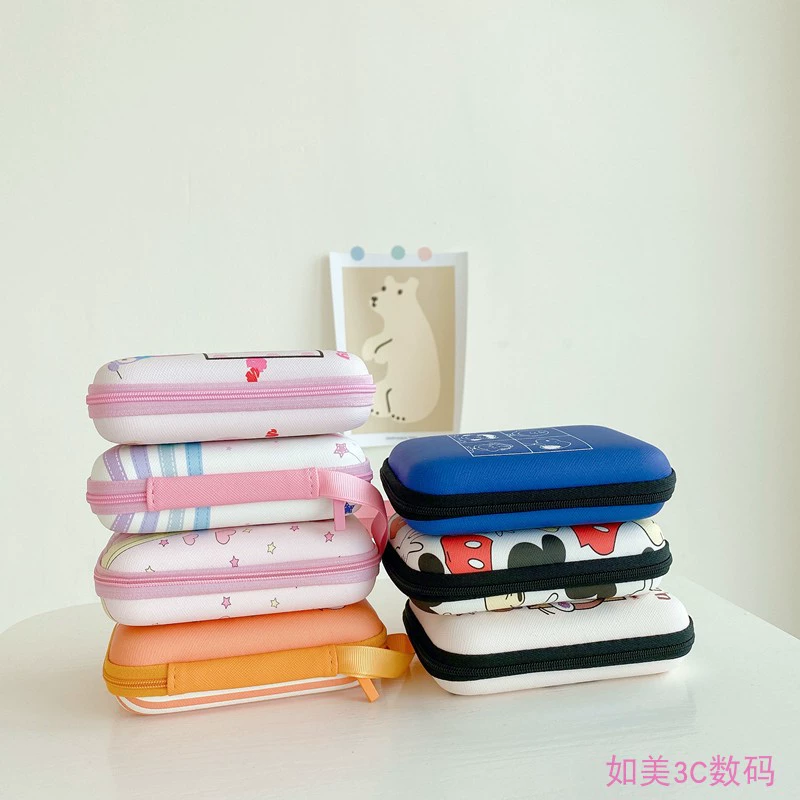 Cute multifunctional zipper Bluetooth wired headphone storage bag leather pattern large data cable charger head storage box
