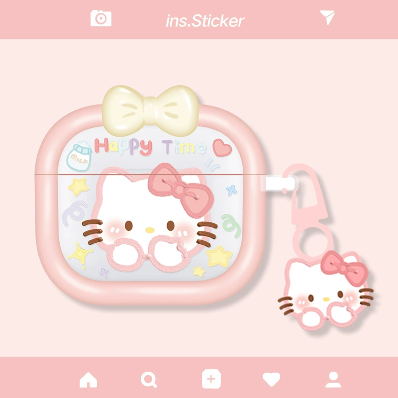 Cute oil painting kitty cat airpods 1/2 generation protective cover Apple pro3 generation earphone case transparent soft silicone