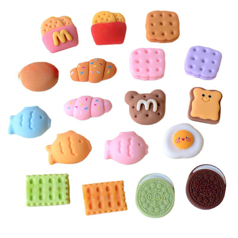 Cute Omelette Fries Biscuit Bread Simulation Food Play Resin Accessories Hole Shoes Cream Glue Accessories pj556