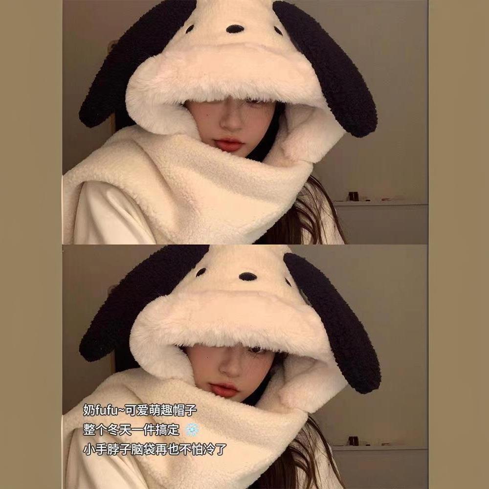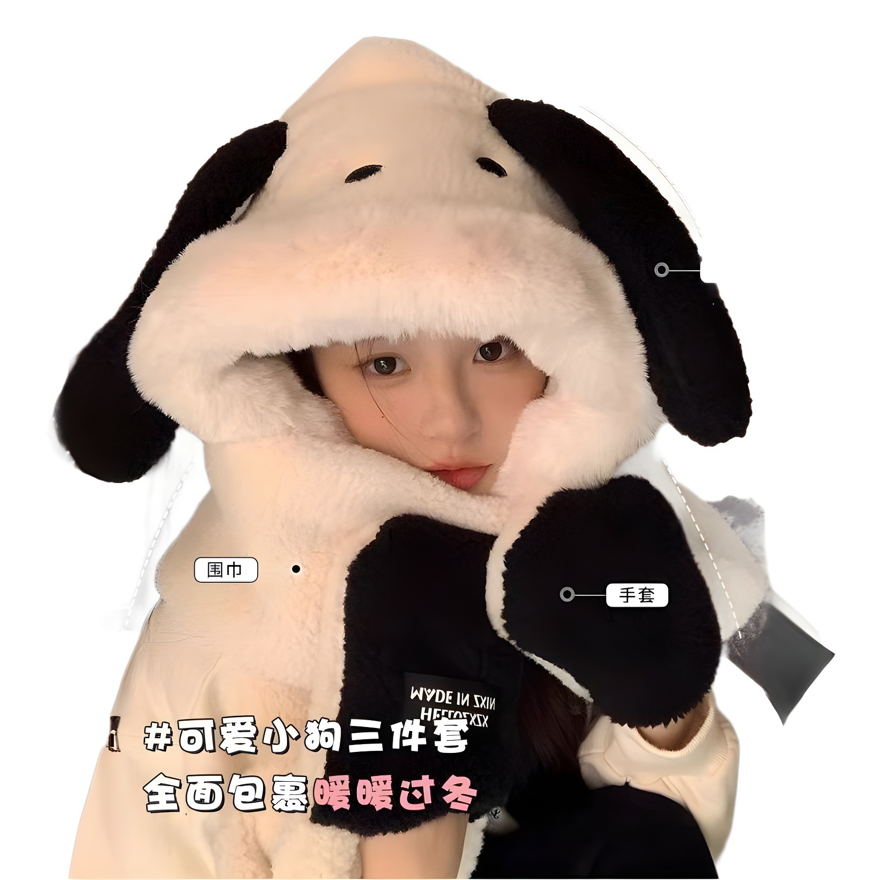 | nameOriginal | Cute Pacha Dog Plush Hooded Neck Women's Winter Winter Warm Gloves Hat Scarf One-piece Set |