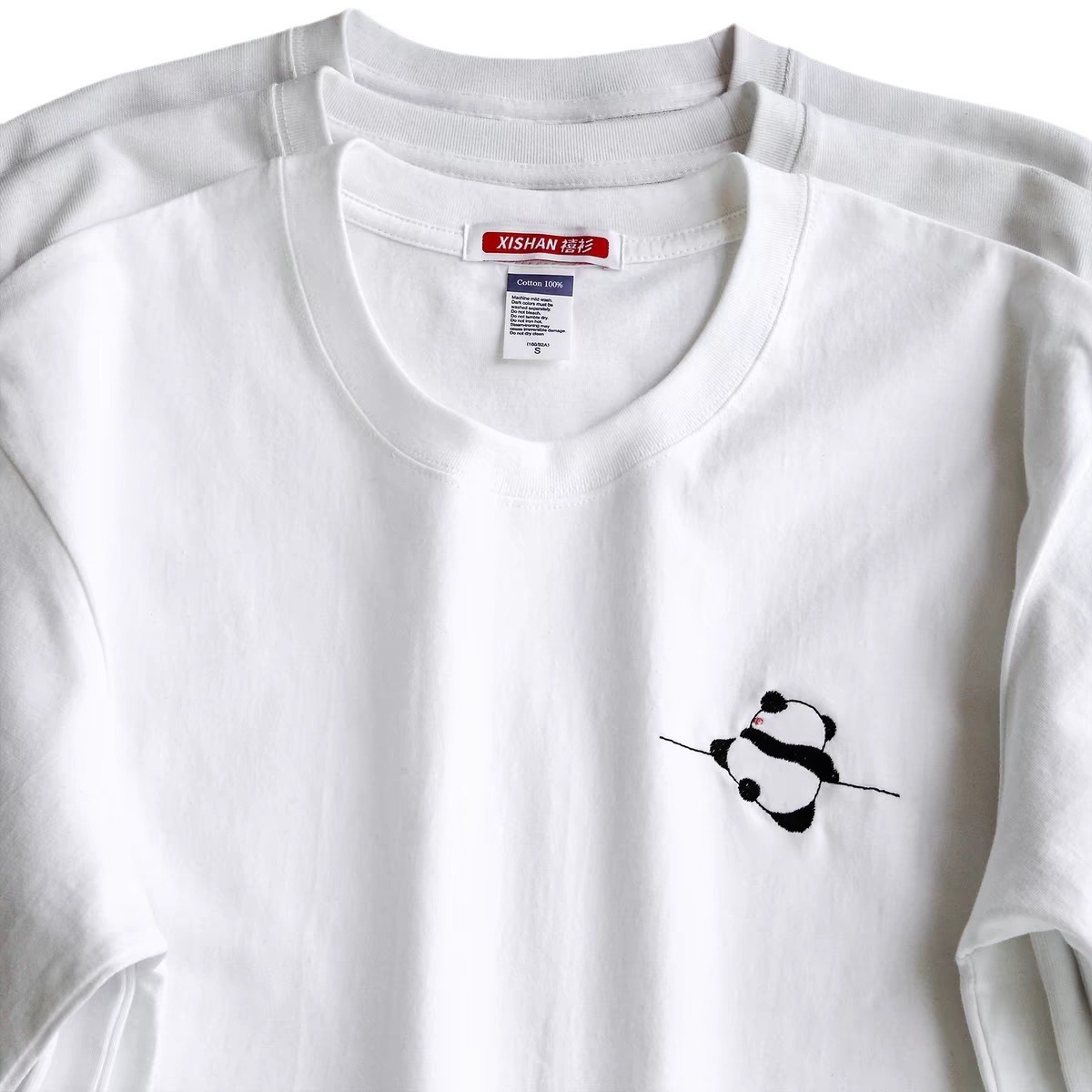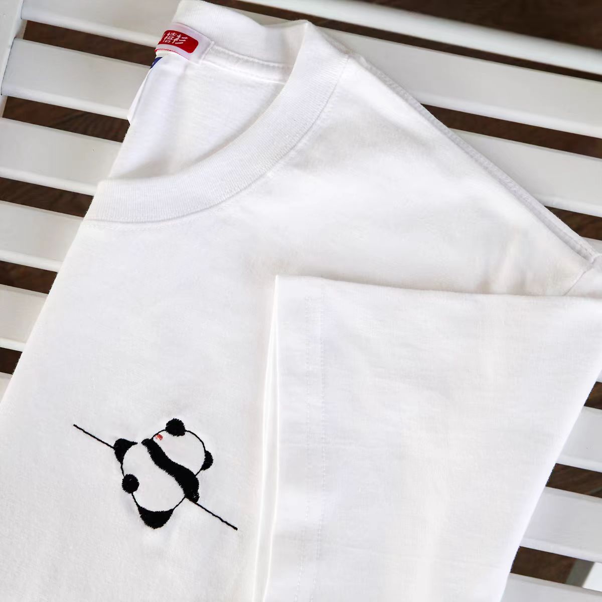 | nameOriginal | Cute Panda Flower Embroidered T-shirt Loose Simple Men and Women Couple High Texture Pure Cotton Top Base Shirt Shoulder |