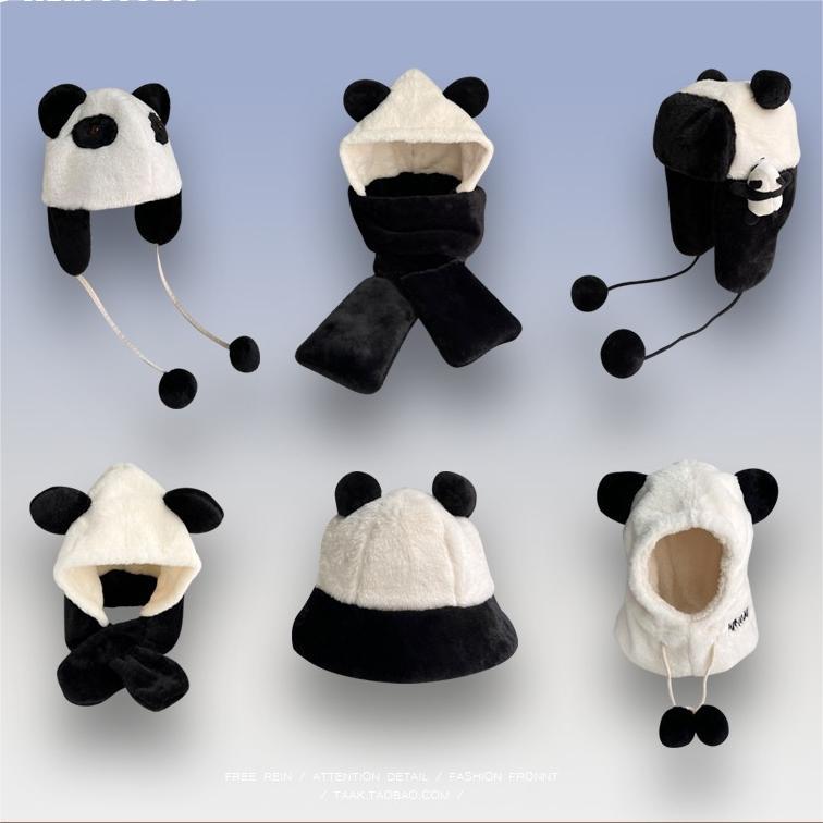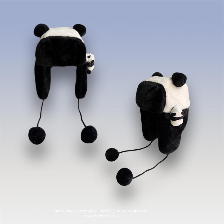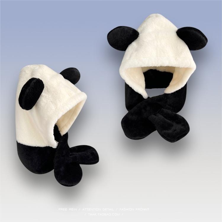 | nameOriginal | Cute panda Lei Feng hat female autumn and winter warm all-match student plush ear protection hat scarf three-piece set |