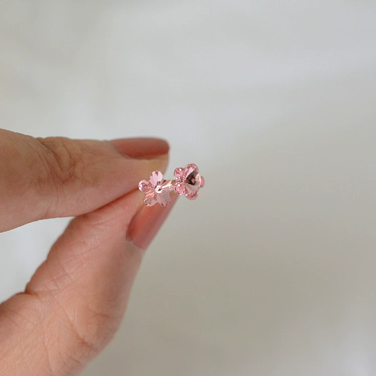 Cute pink crystal sparkling diamond stud earrings with flowers