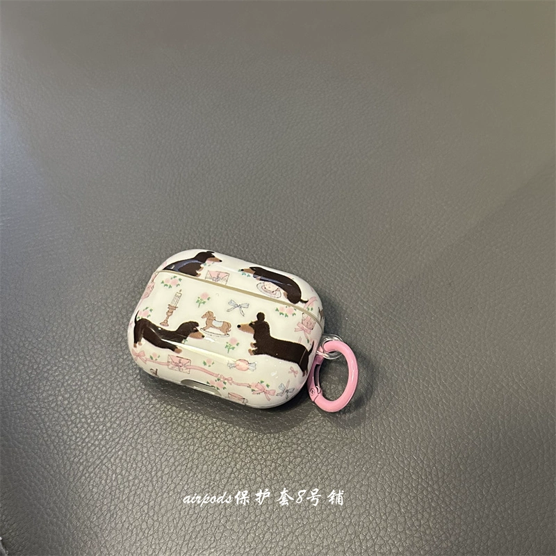 Cute pink dachshund puppy suitable for Apple wireless Bluetooth airpods pro1 generation headphone protective case 2 generation 3 generation