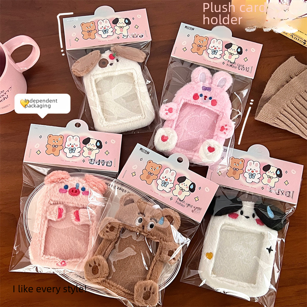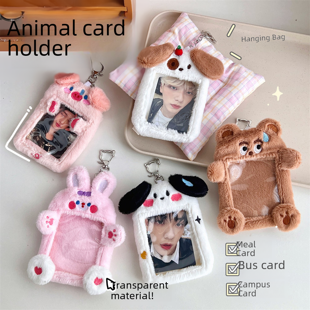 Cute plush animal card holder ins girl chasing star love bean Photo Storage Set student campus card decorative bag