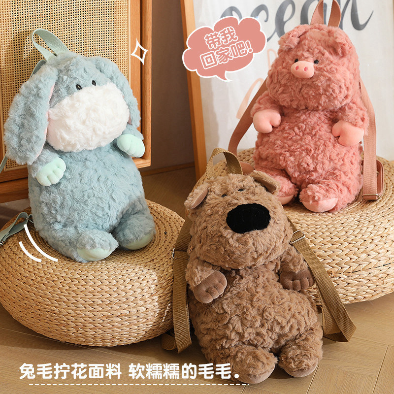| nameOriginal | Cute Plush Bag Backpack Female Children Cartoon Pig Dog Kitten Dinosaur Doll Doll Bag |