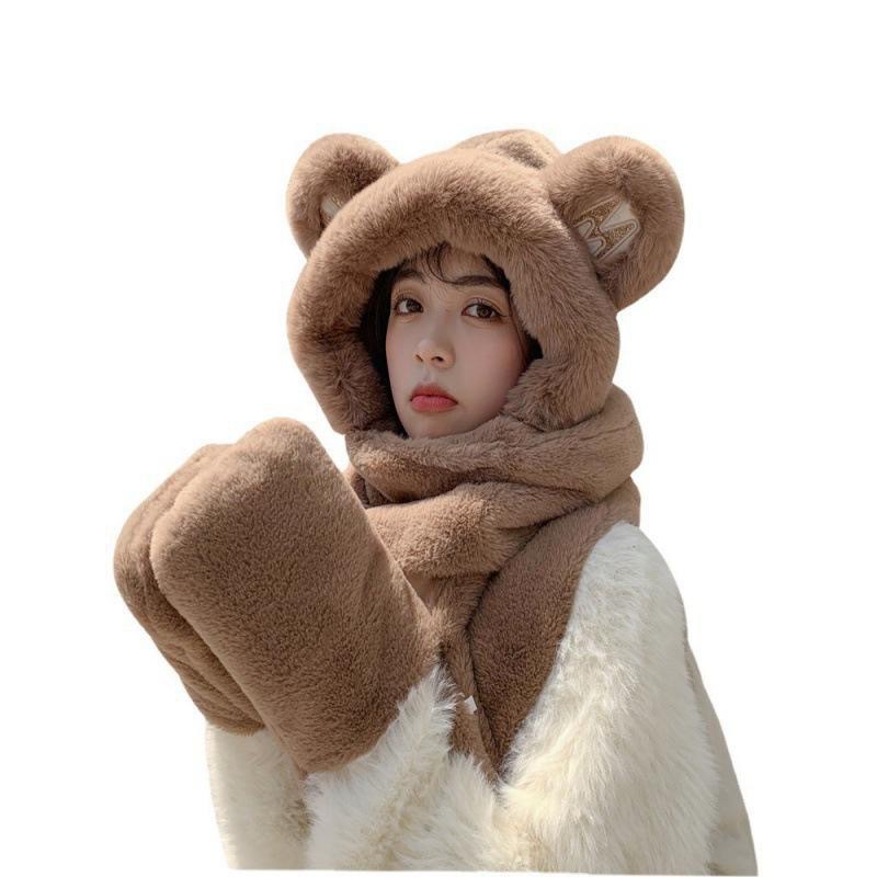 | nameOriginal | Cute Plush Bear Scarf All-in-One Three-Piece Set Women's Autumn and Winter Warm New Student Simple Bear Scarf Gloves |