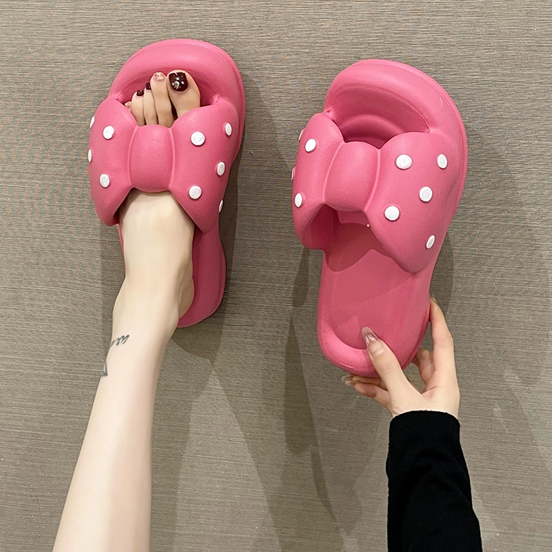 Cute polka dot flip flops for women in summer thick bottom bow