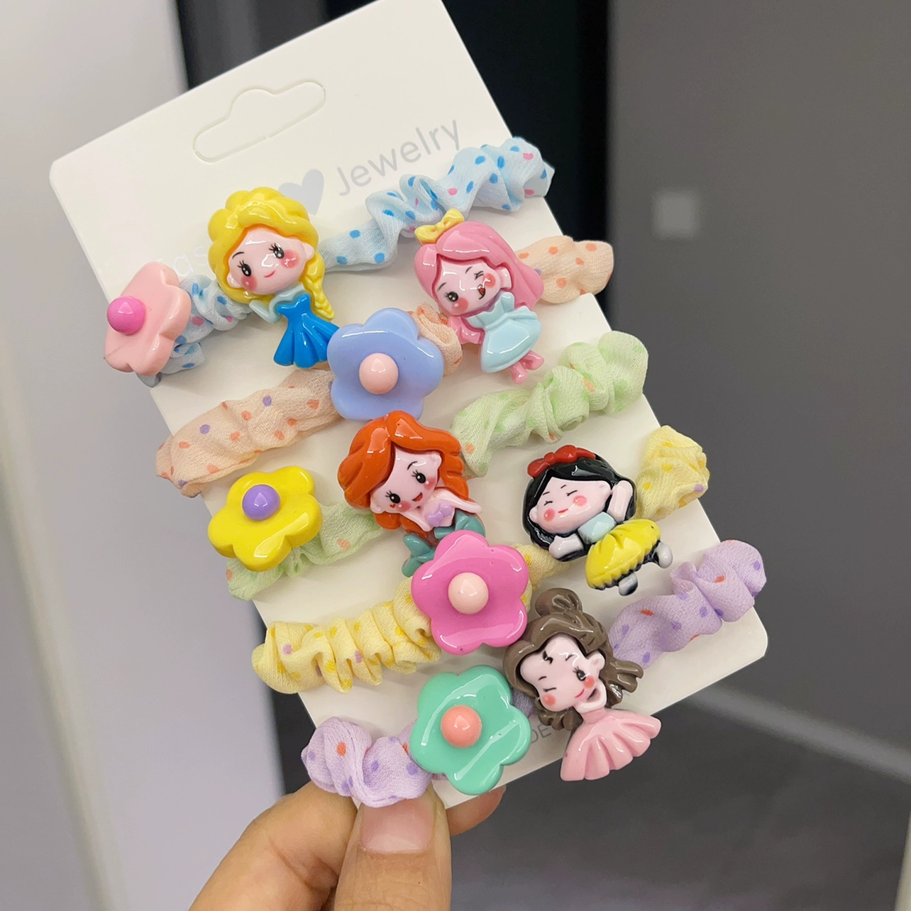 Cute princess hair ring with flowers, mermaid, small intestine ring, girls' hair accessories, Snow White hair rope, student head rope accessories