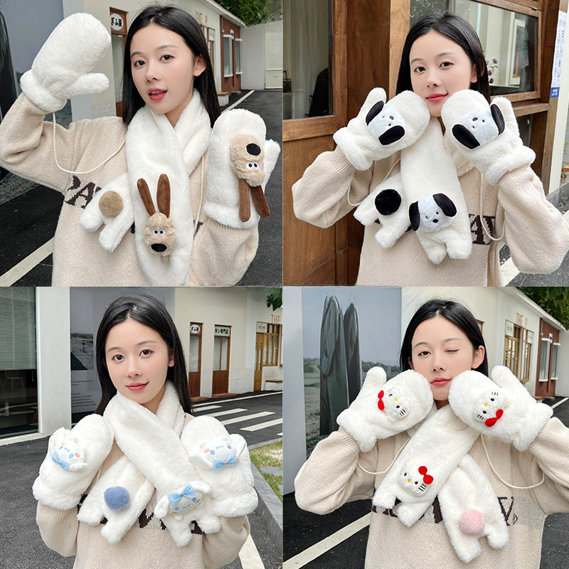 | nameOriginal | Cute puppy plush scarf girls' winter cold-proof new versatile Korean style warm short cartoon scarf gloves |