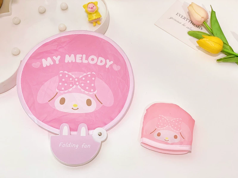 Cute round fan girl cartoon mini folding fan pocket round fan children's portable folding fan summer internet celebrity