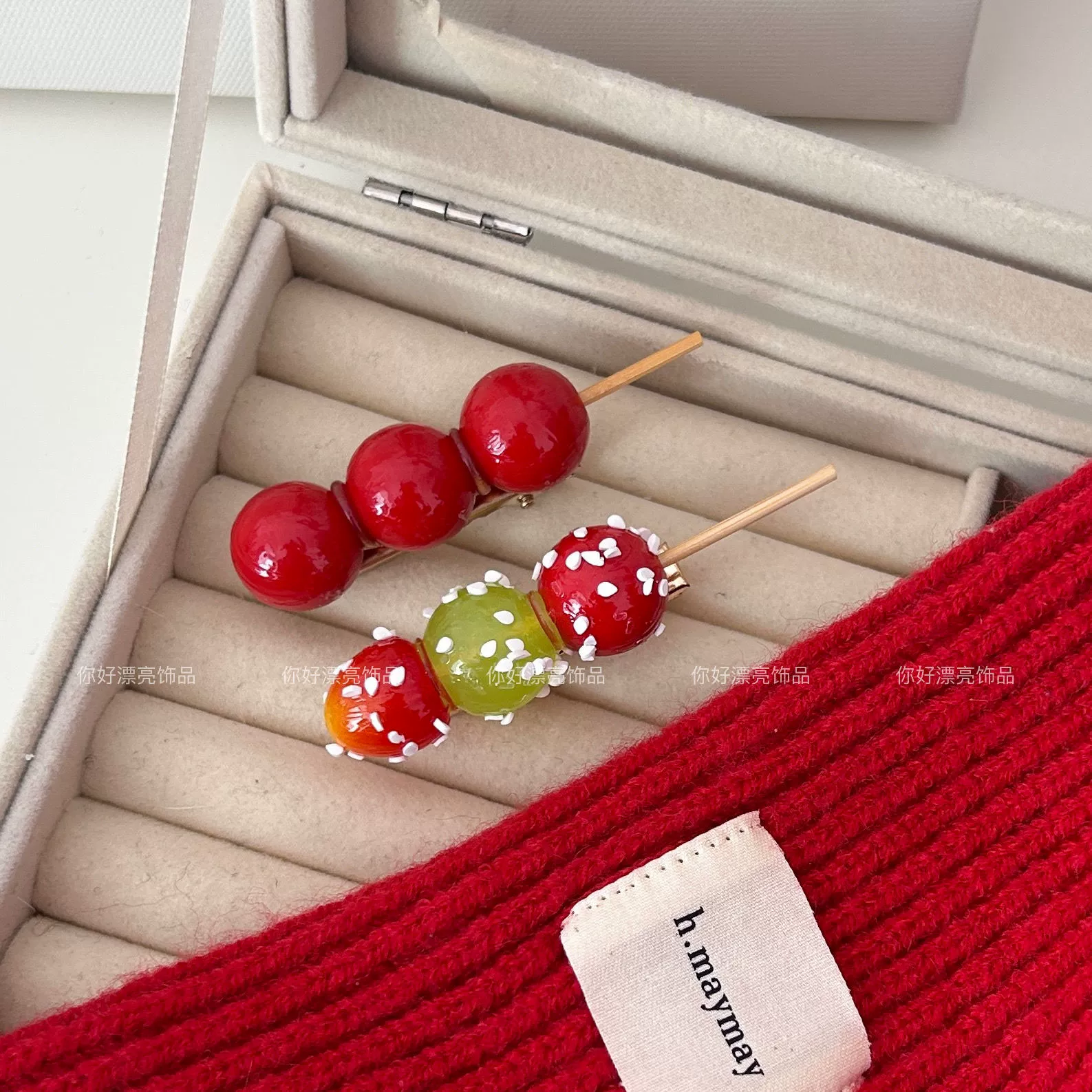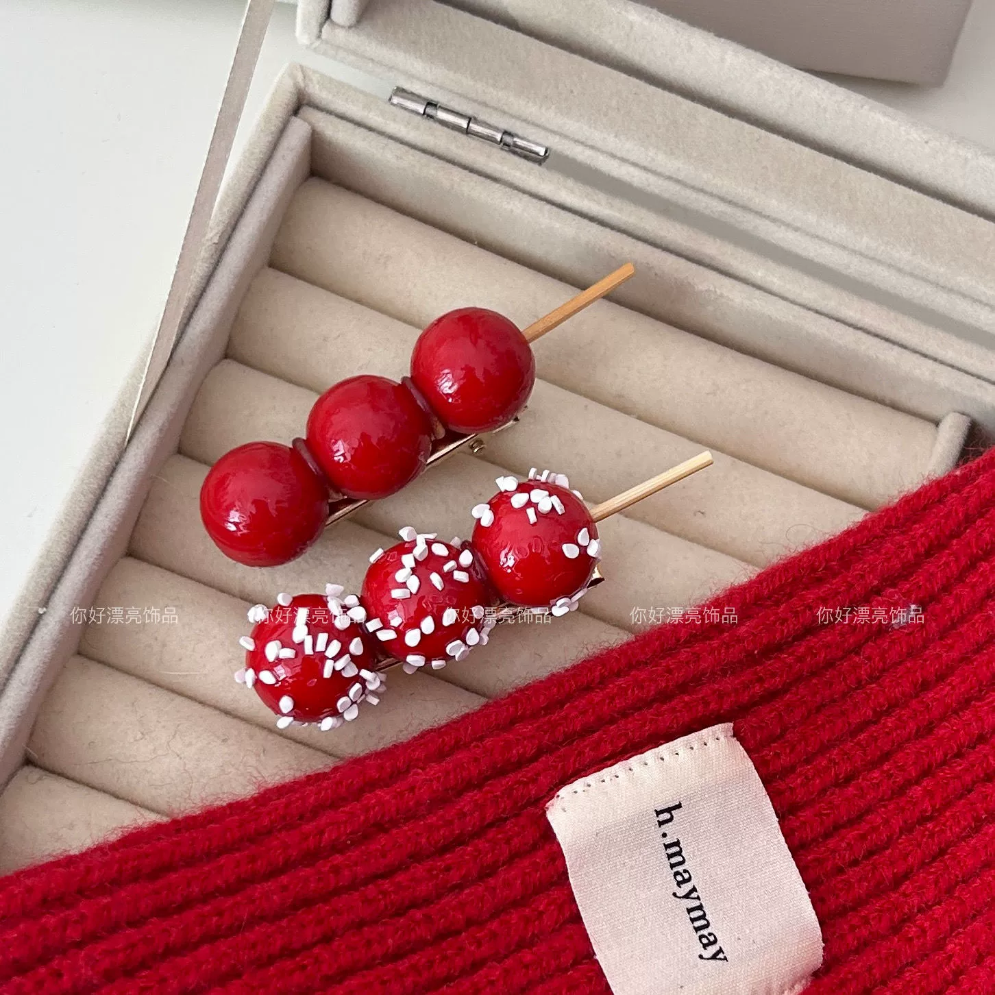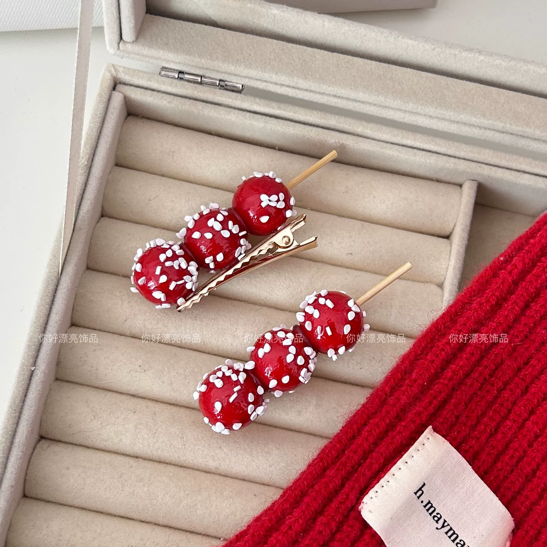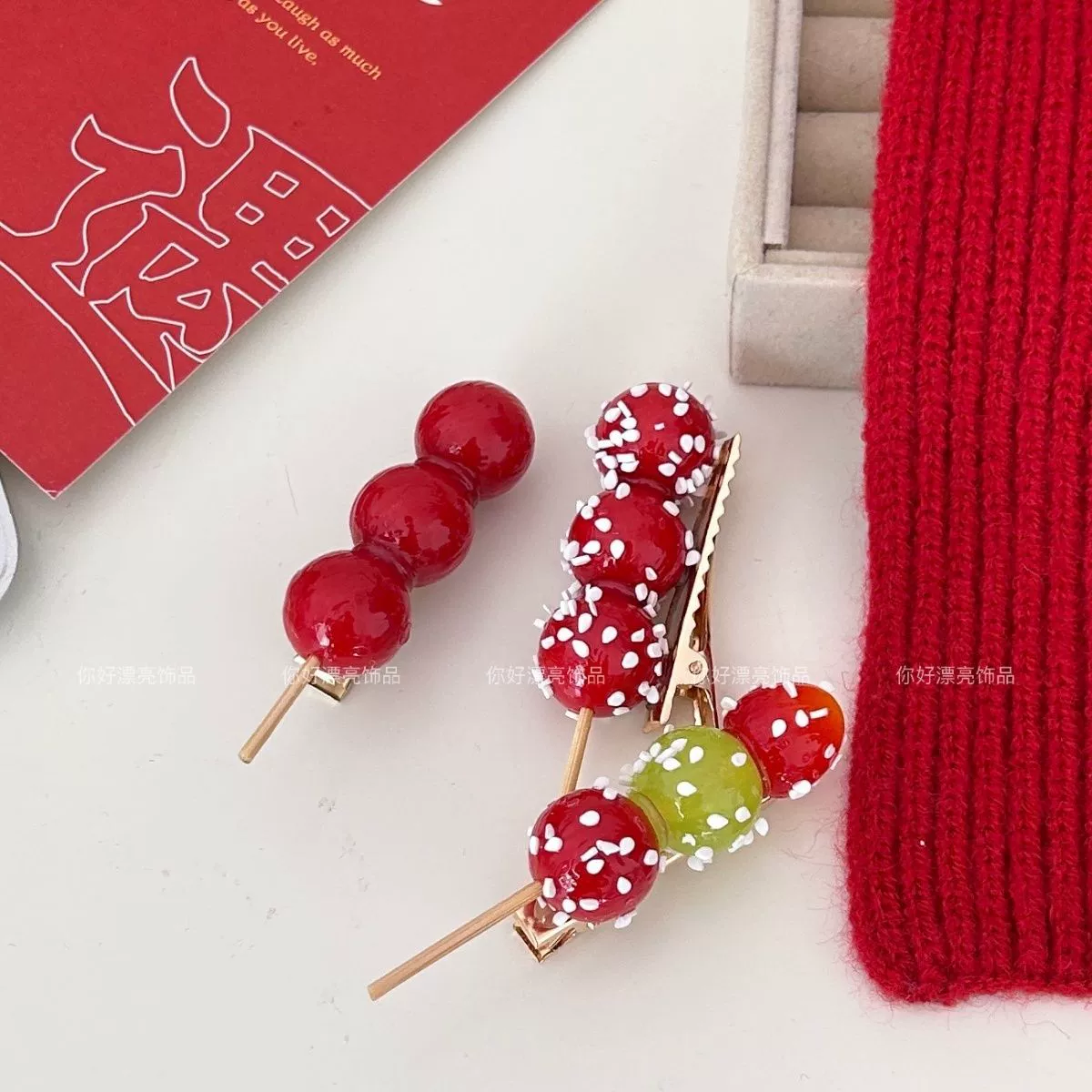 | nameOriginal | Cute simulated candied haws hairpin autumn and winter new year red side clip fun food toy student bangs hair accessories hairpin for women |