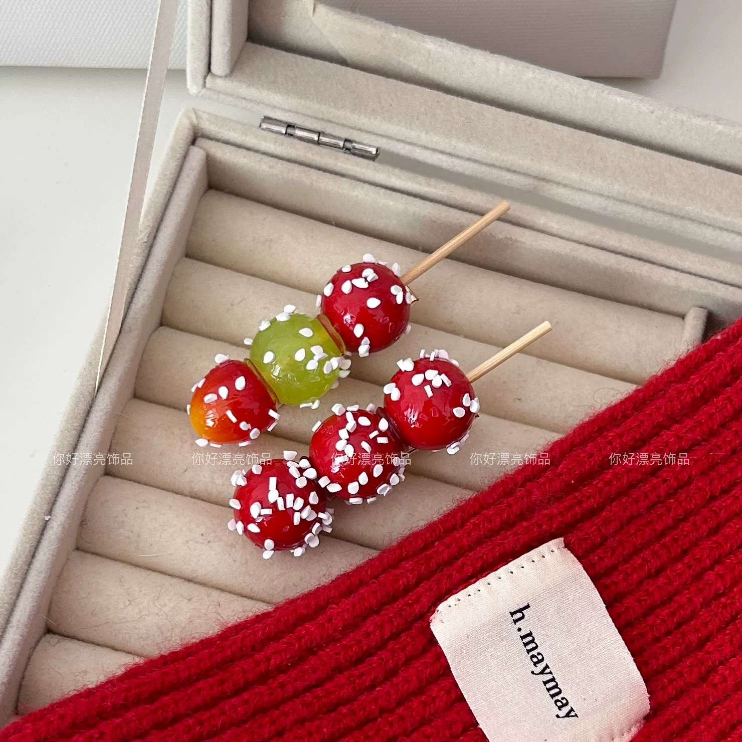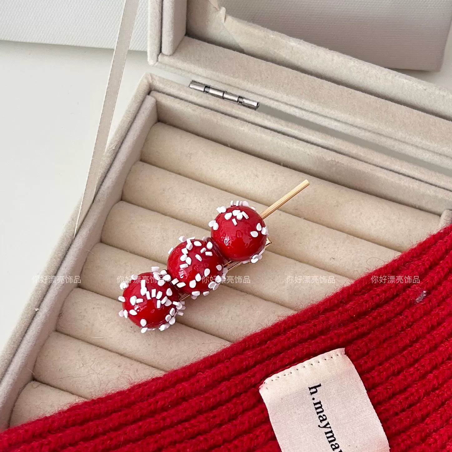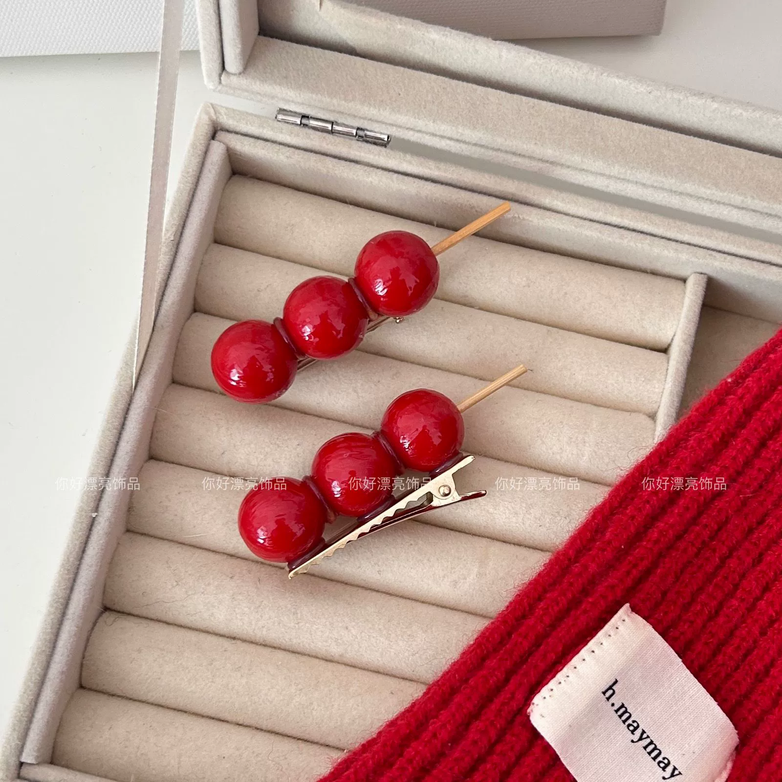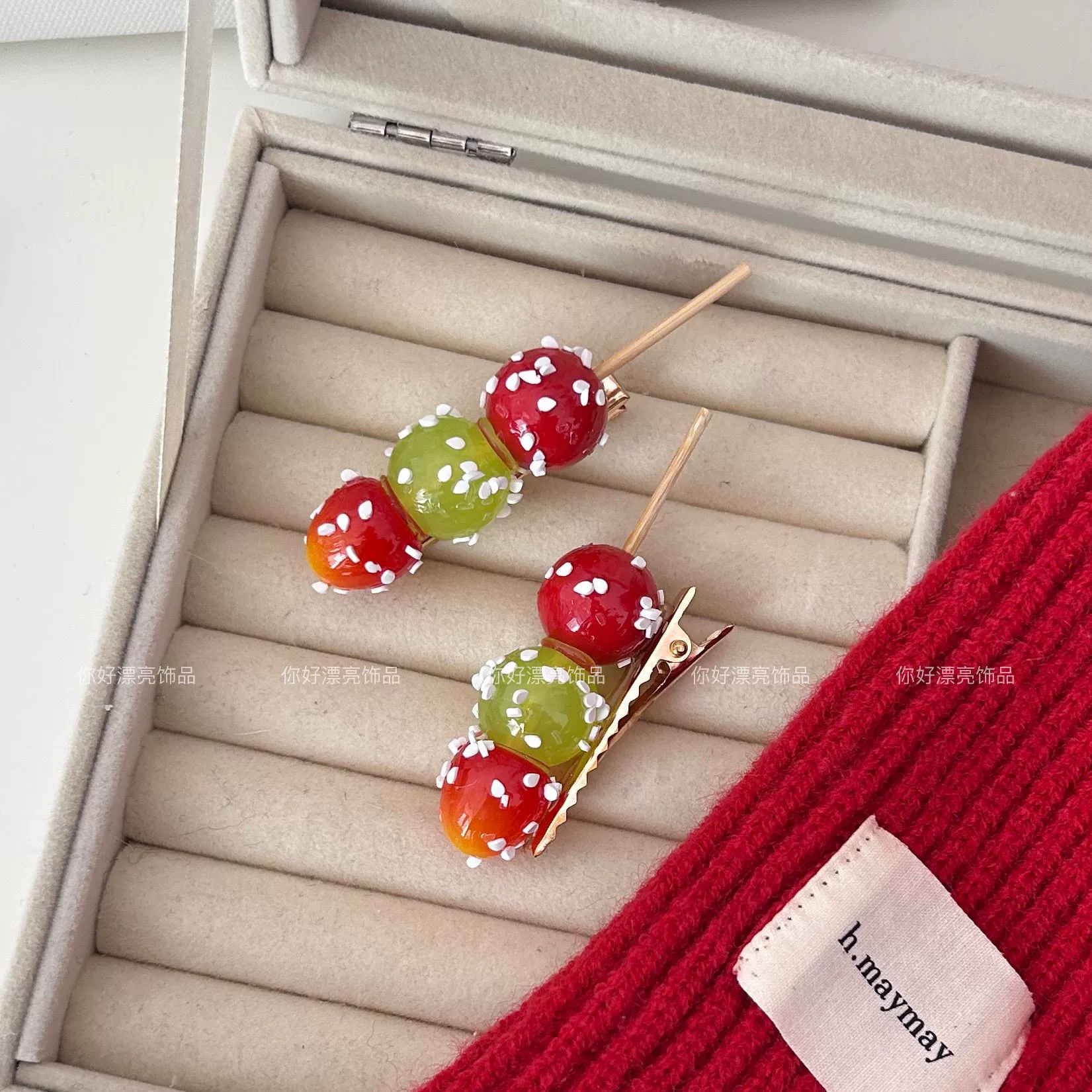 | nameOriginal | Cute simulated candied haws hairpin autumn and winter new year red side clip fun food toy student bangs hair accessories hairpin for women |