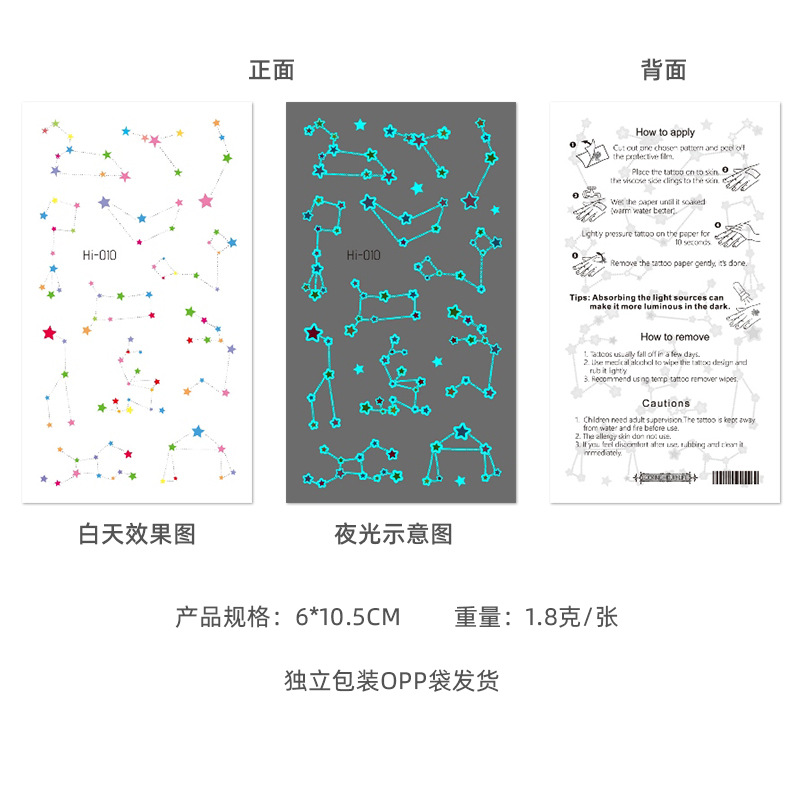 Cute Small Fresh Cyber Celebrity Luminous Tattoo Sticker ins Style Waterproof Women's Lasting Personality Creative Luminous Tattoo Sticker