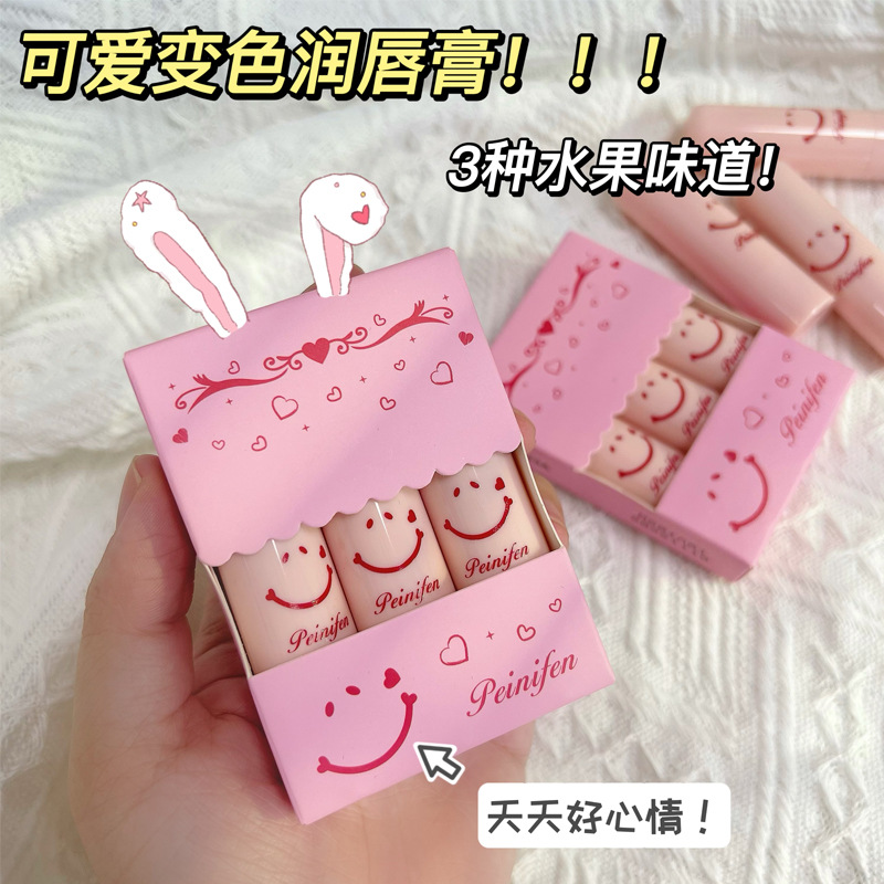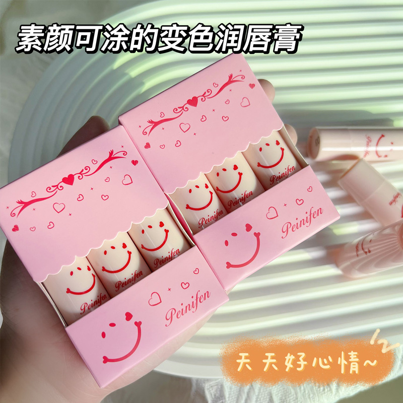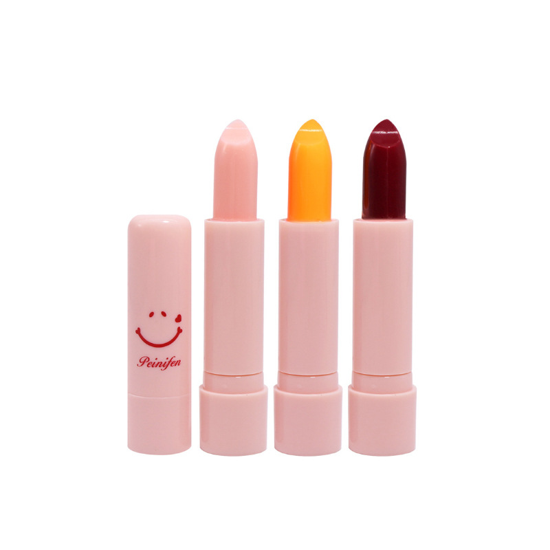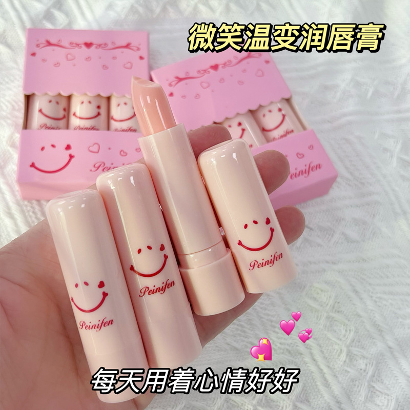 Cute smiley face temperature-sensitive color-changing lip balm moisturizing moisturizing relieving dry anti-cracking moisturizing hydrating fading lip lines