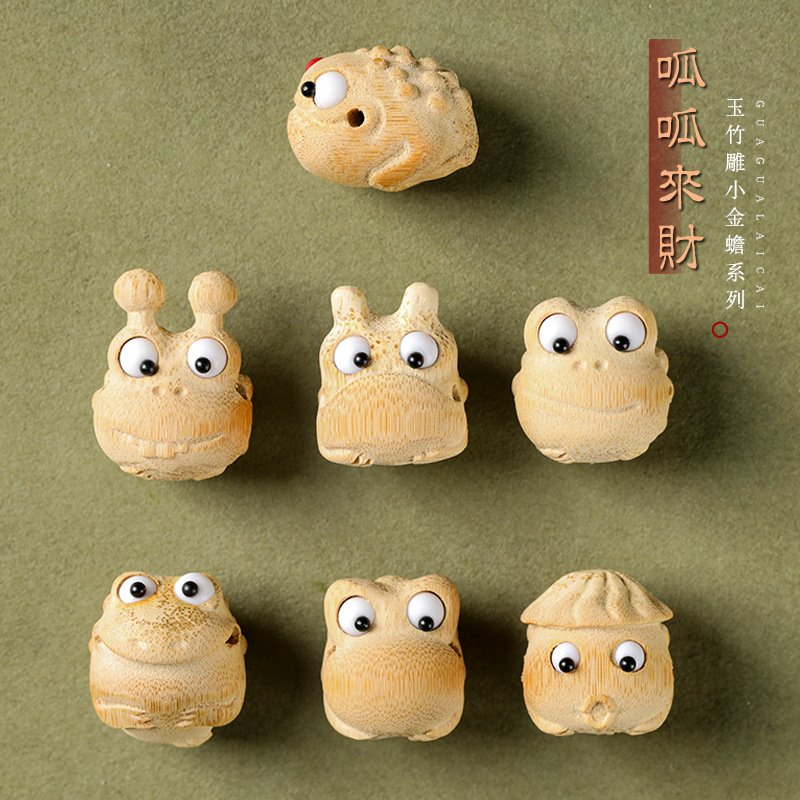 | nameOriginal | Cute solid bamboo mini live eye golden toad bamboo carving jade bamboo diy Wenwan ring handle accessories pendant accessories |
