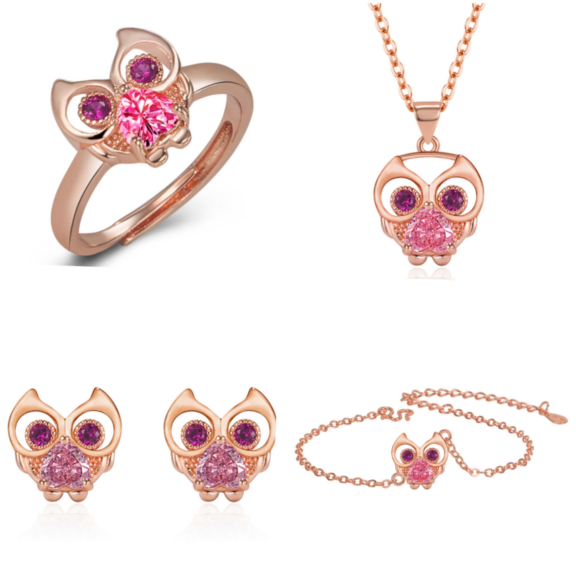 | nameOriginal | Cute sweet owl jewelry suit red corundum big eyes male eagle stud earrings pendant bracelet ring for women |