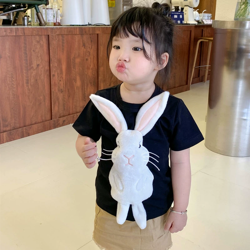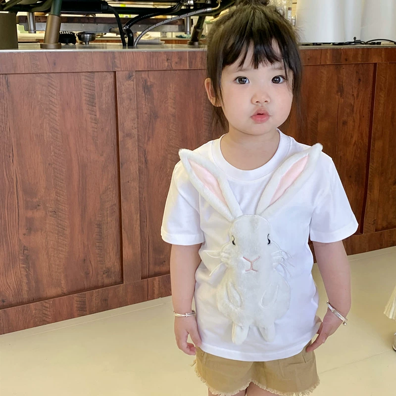 Cute three-dimensional animal bunny short-sleeved girls' T-shirt