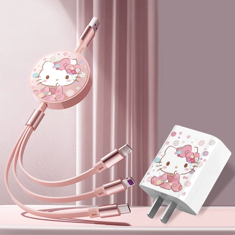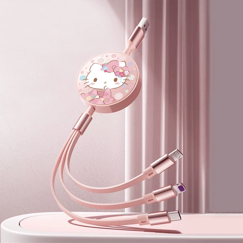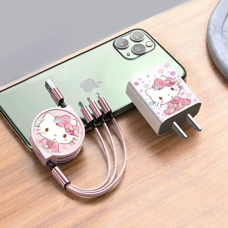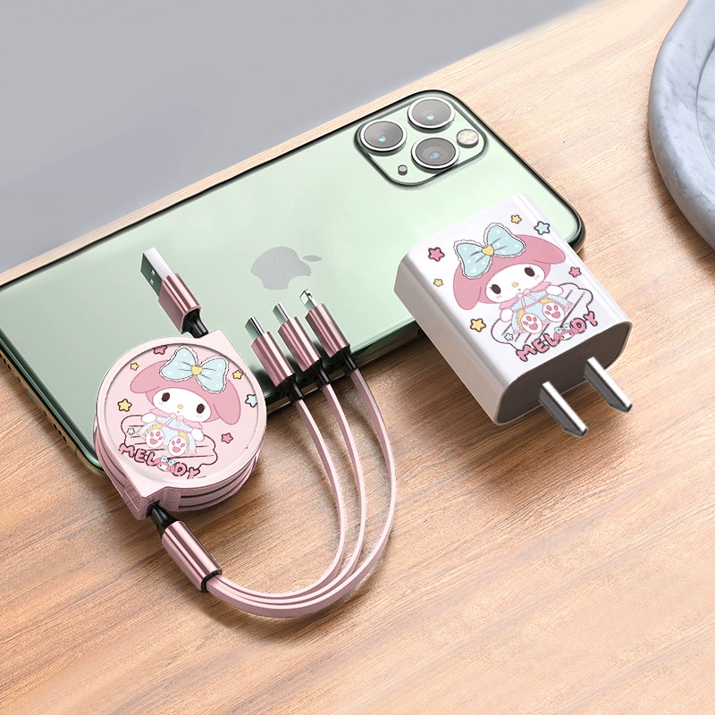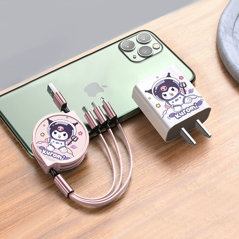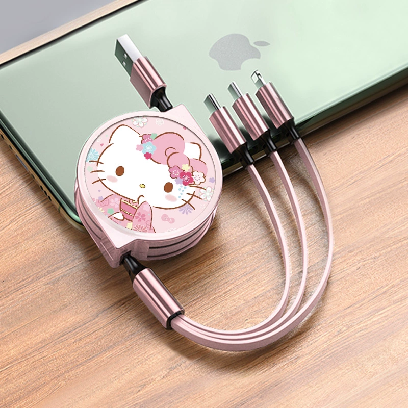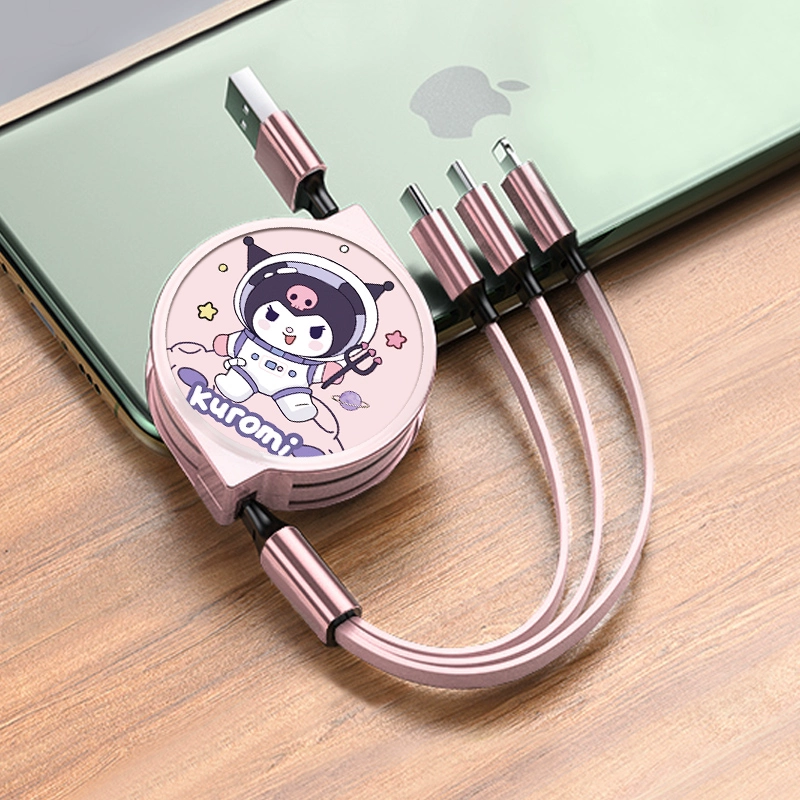Cute three-in-one charger cable cartoon Apple retractable data cable type-c Huawei Honor Samsung Vivo Xiaomi Oppo Android Universal Fast Charging Cable 5A Flash Charging Plug Men and Women Set