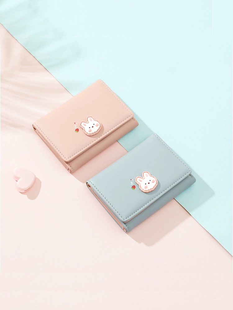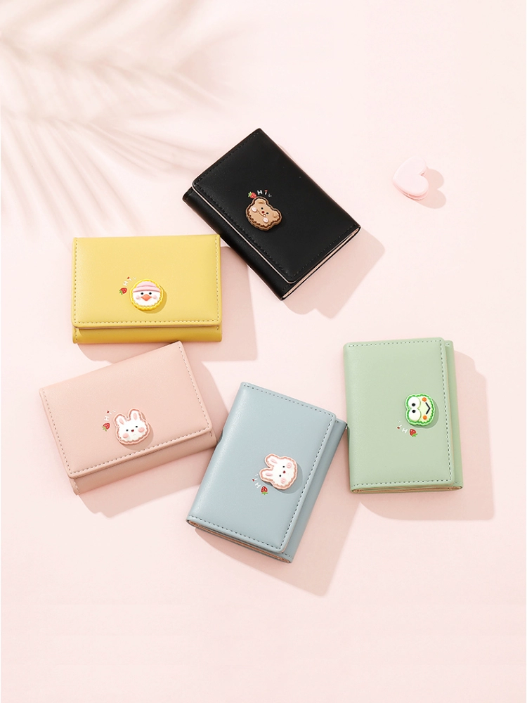 Cute wallet for women summer ultra-thin mini compact three-fold wallet simple cartoon student short coin card holder