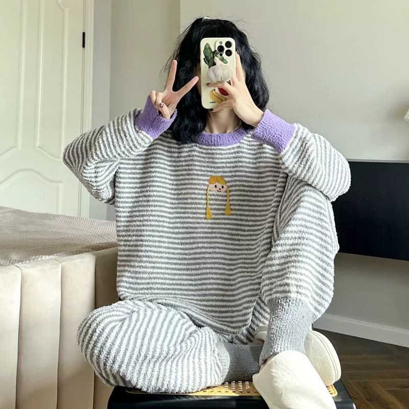 | nameOriginal | Cute women's autumn and winter coral velvet sweet pajamas with braids |