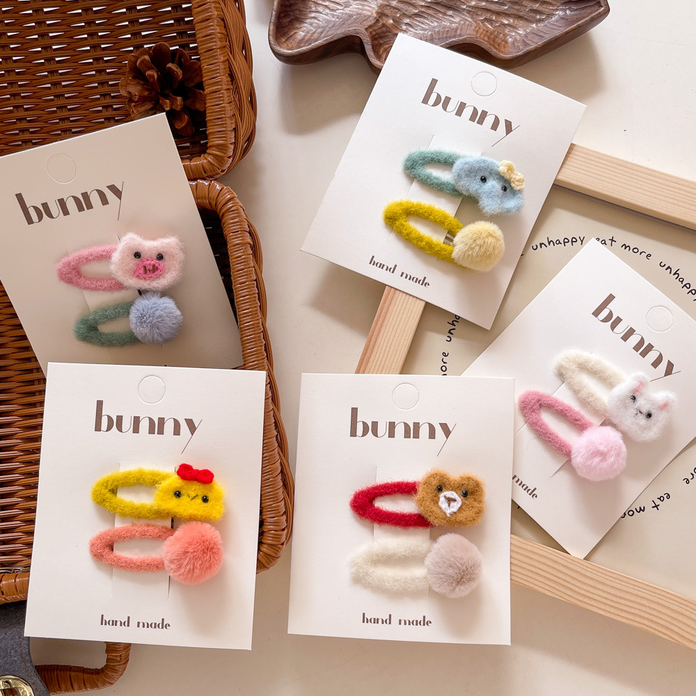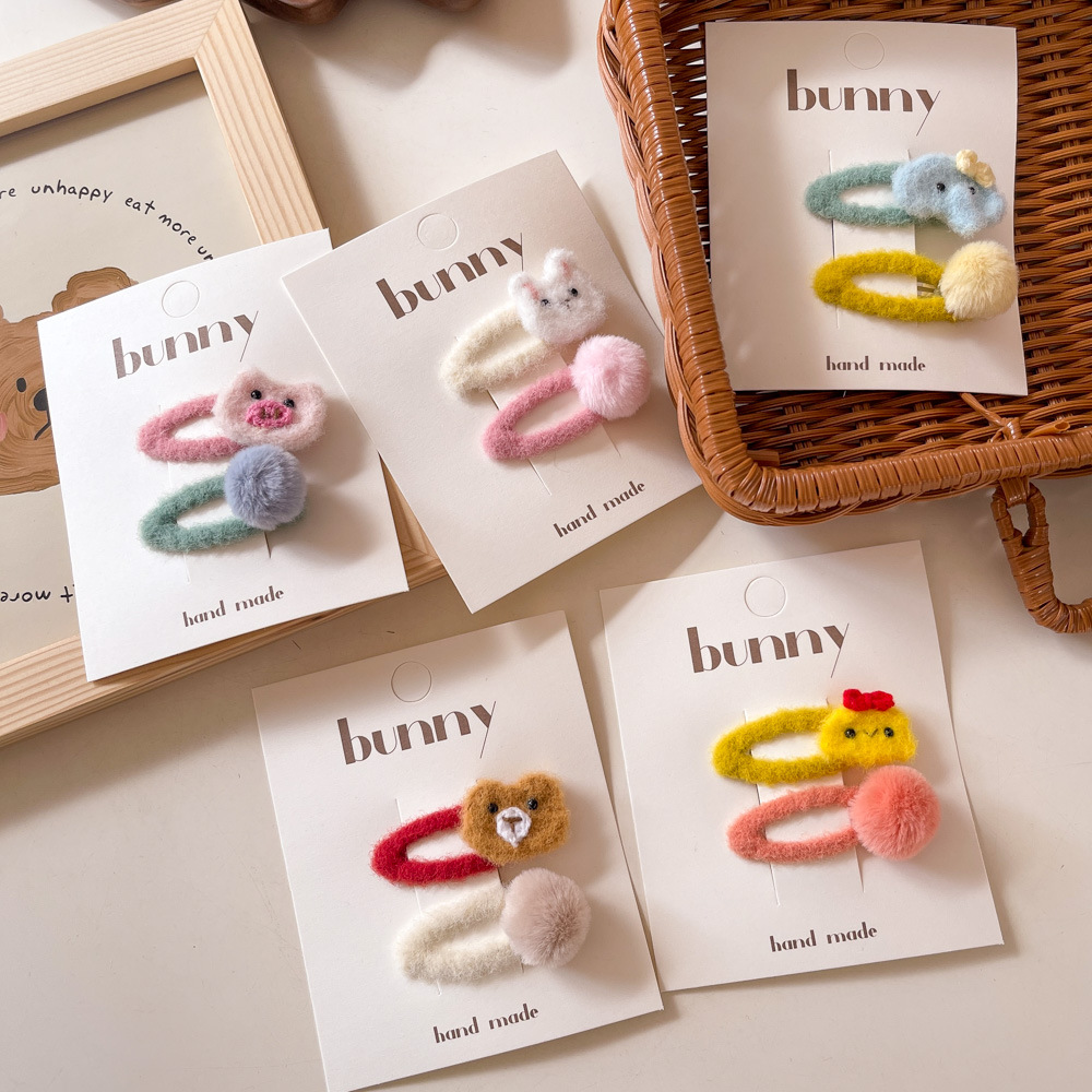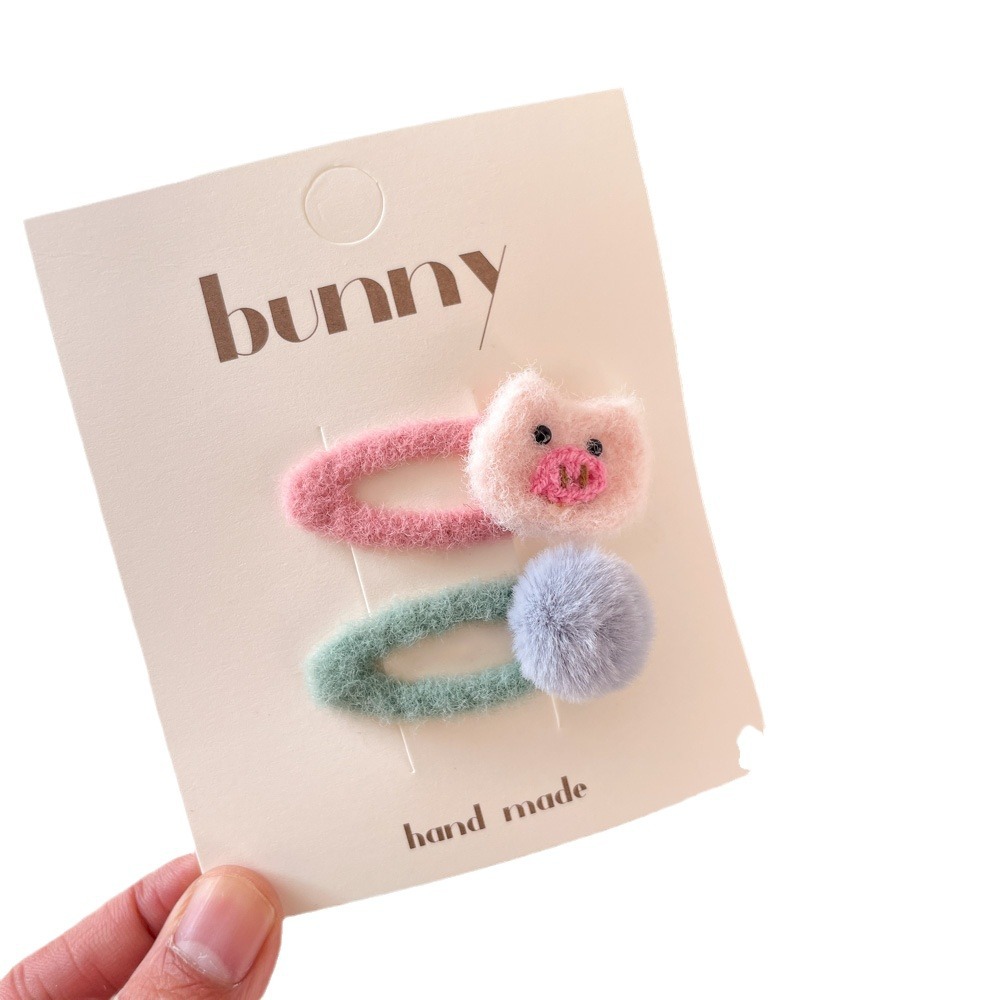 | nameOriginal | Cute wool crochet cartoon animal head baby BB clip winter plush girl hairpin bangs side clip headdress female |