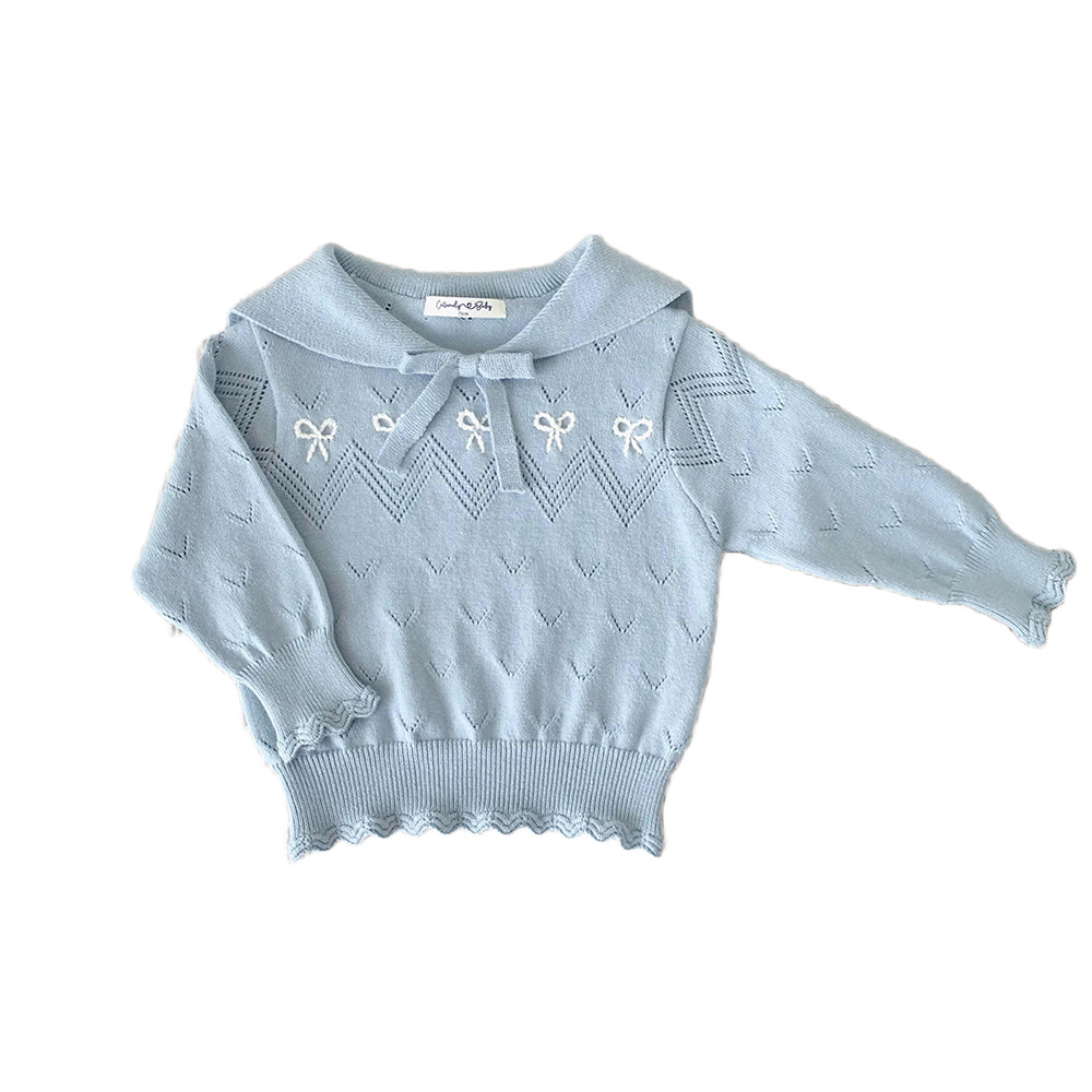 | nameOriginal | Cutemily spring baby girl pullover hollow top baby girl navy collar embroidered college style long sleeve thin sweater |