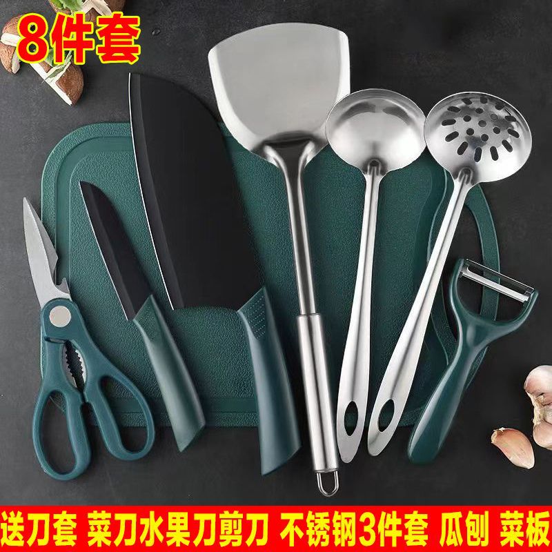 | nameOriginal | Cutting board three-piece kitchen knife household dormitory kitchen utensils spatula 8 sets home dormitory outdoor Mahalanobis steel black blade |
