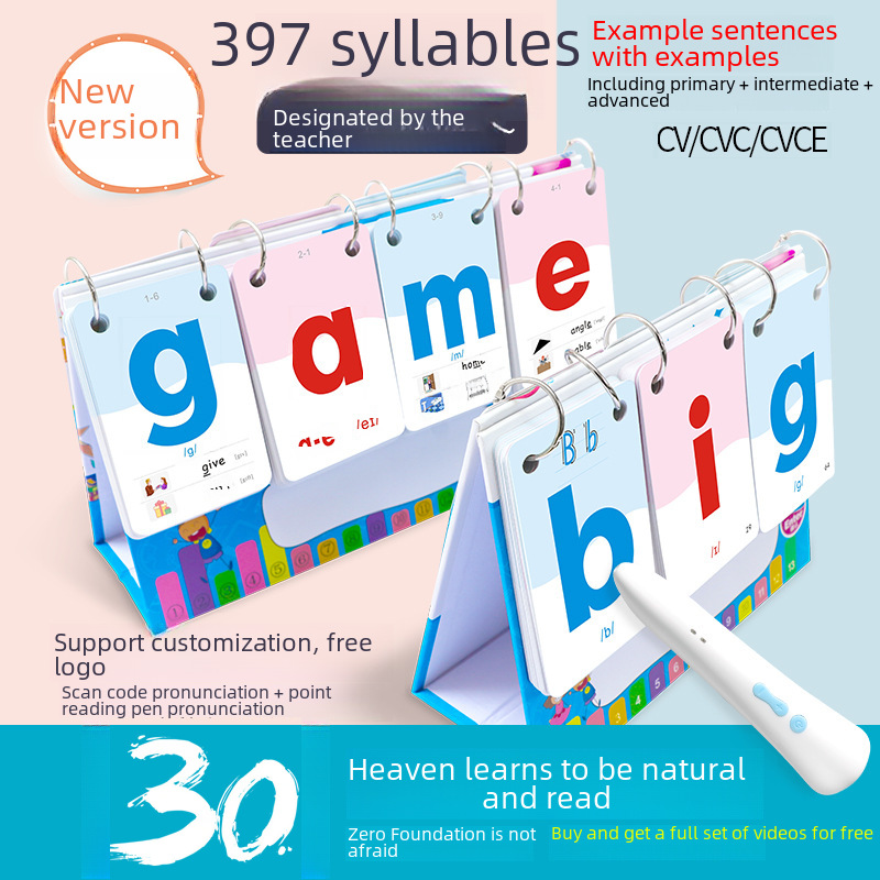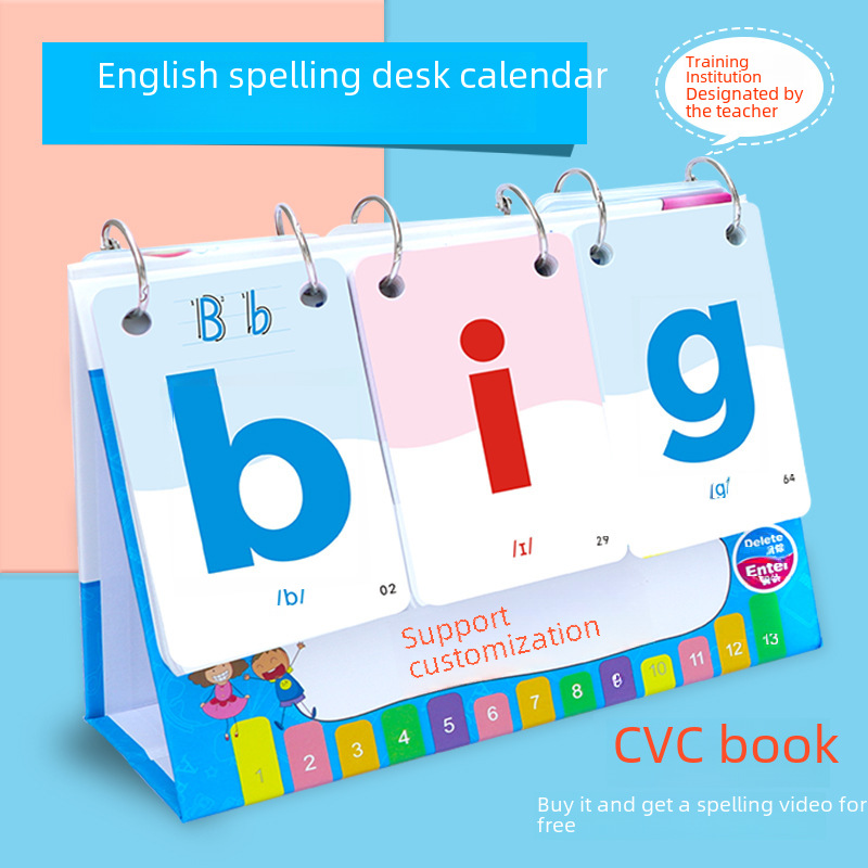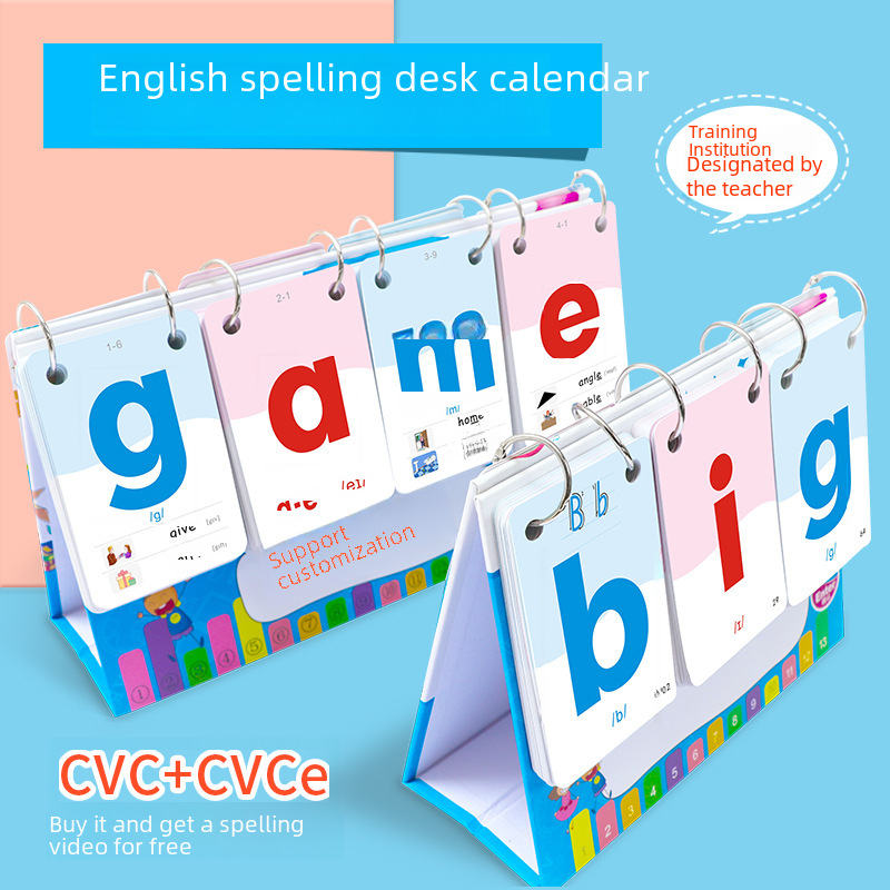 | nameOriginal | CVC children's word natural spelling desk calendar card phonics young children's connection English letter word flip card |