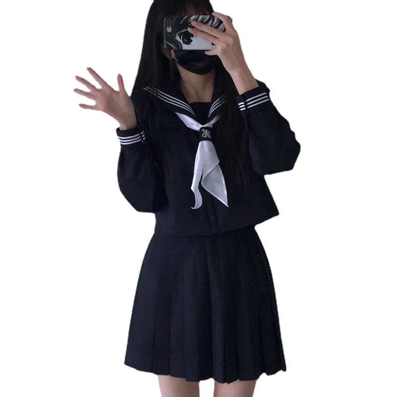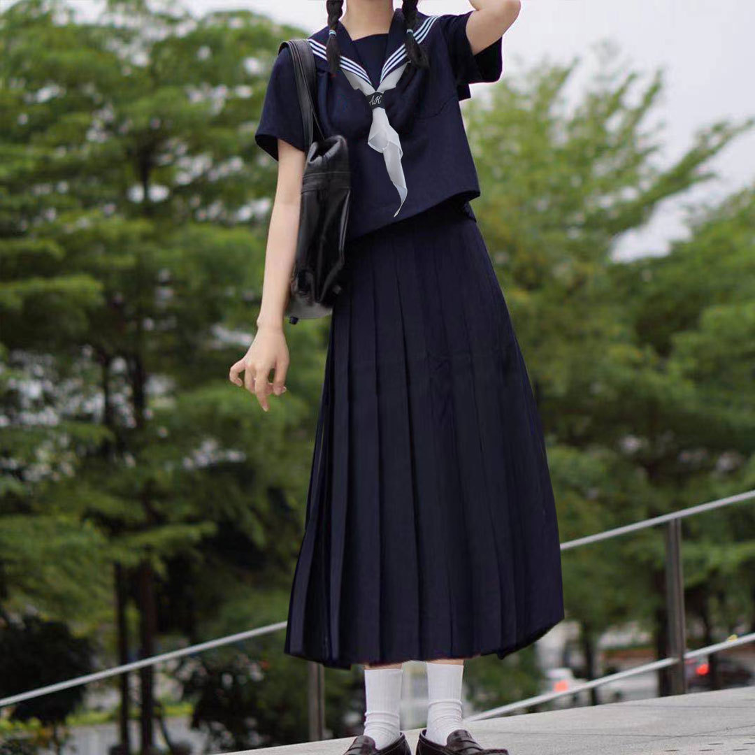 | nameOriginal | Cyan Three Basic Japanese Sailor Uniform School Uniform Orthodox Genuine Middle Suit Summer Bad Girl's Long Skirt |