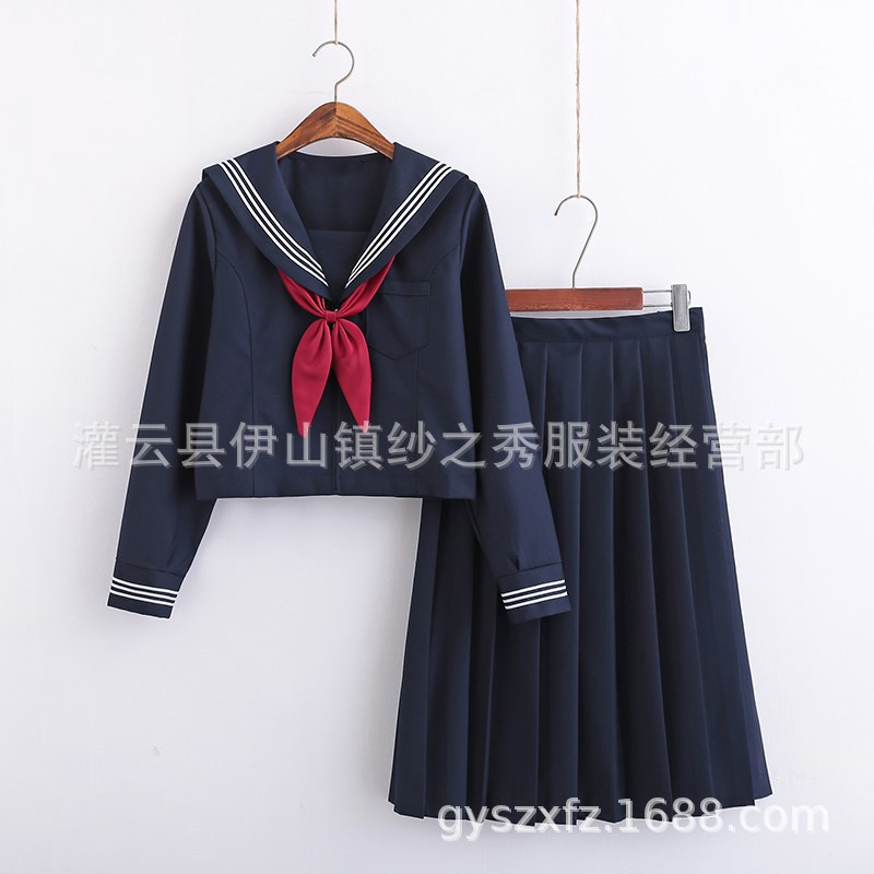 | nameOriginal | Cyan three Orthodox JK uniform basic Navy Navy Academy style school for middle sailor suit spring and autumn |