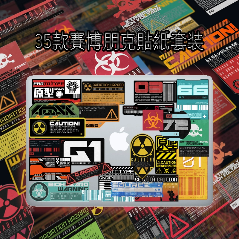 | nameOriginal | Cyberpunk sci-fi warning label radiation sticker computer notebook ipad tablet mobile phone decorative waterproof sticker |