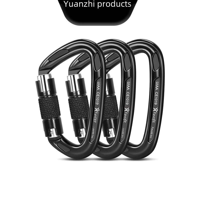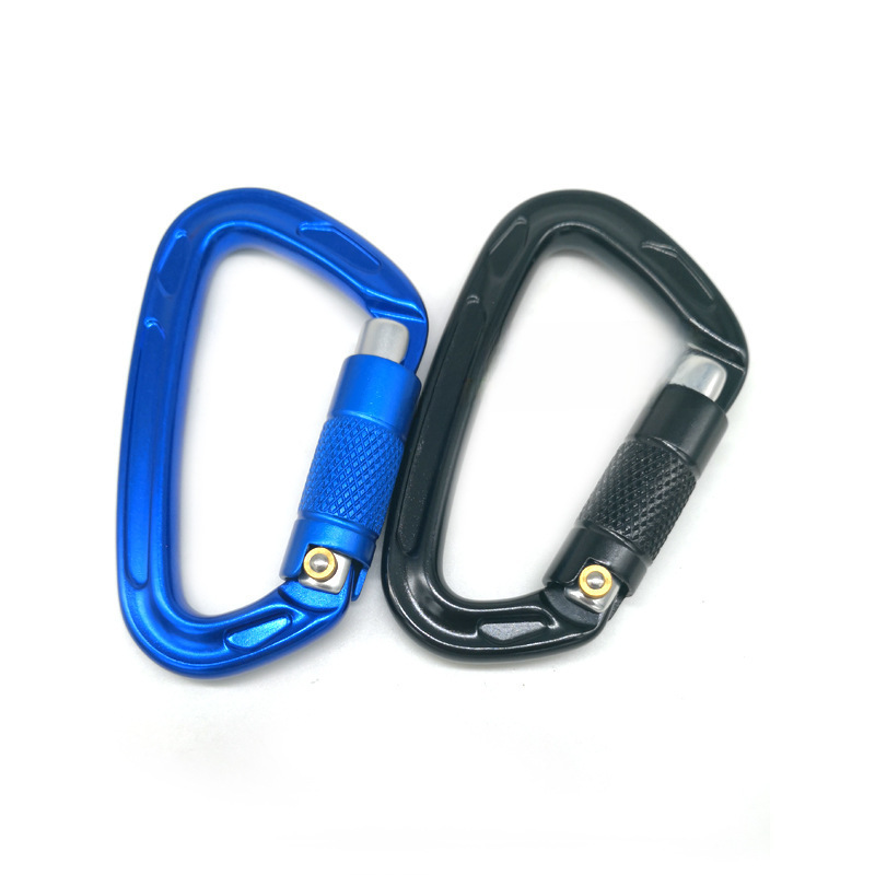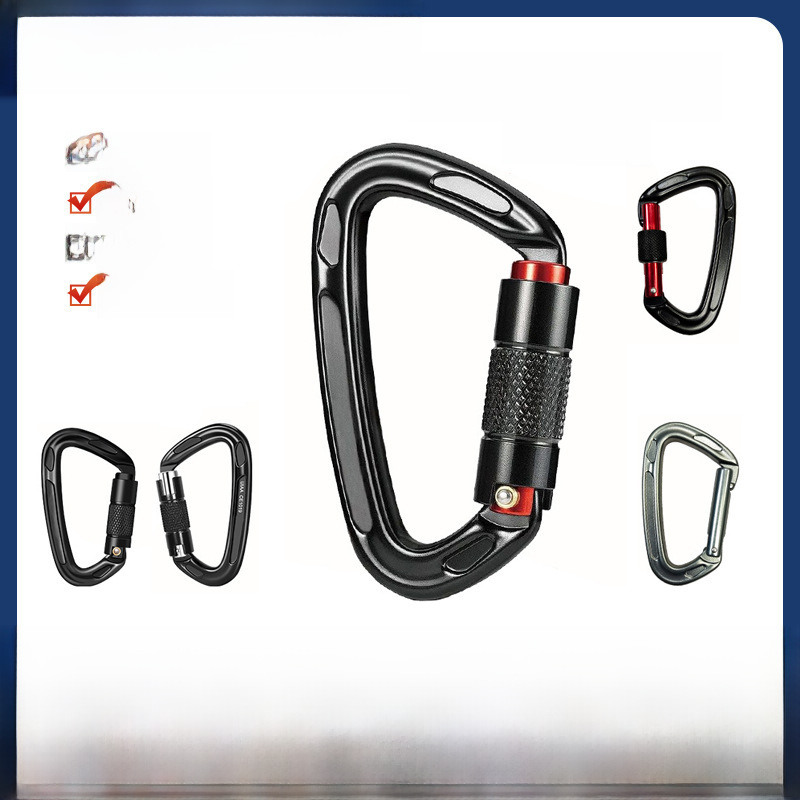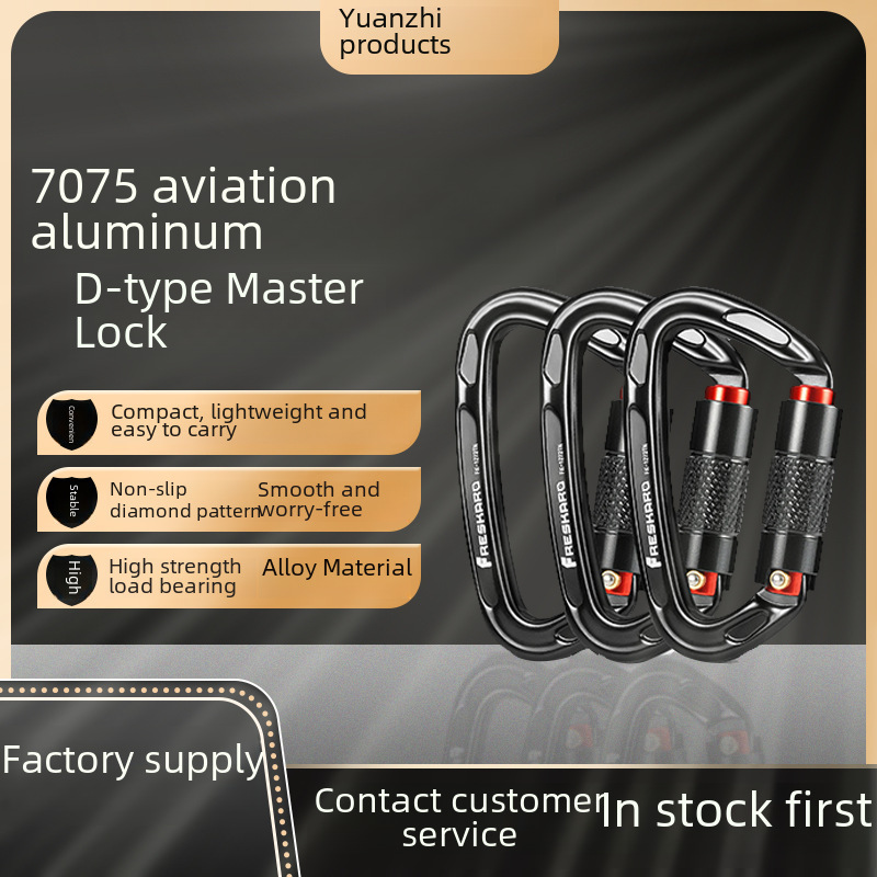 D-type automatic main lock 25KN aviation aluminum alloy D-type mountaineering buckle outdoor mountaineering automatic buckle rock climbing quick hanging hand lock