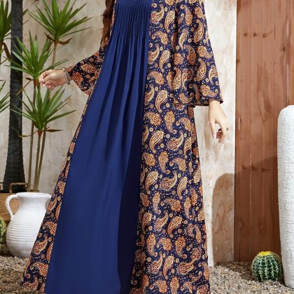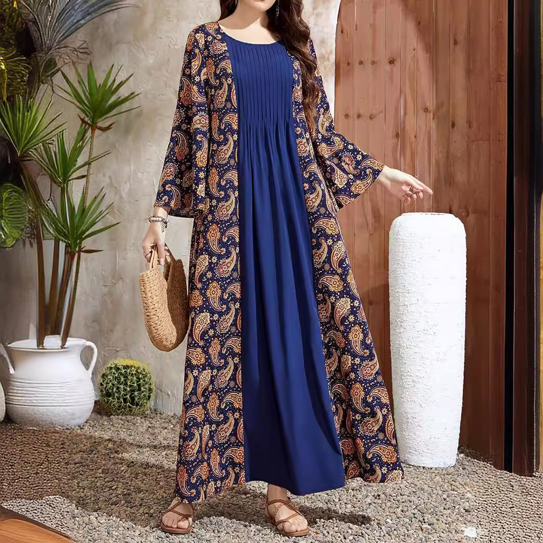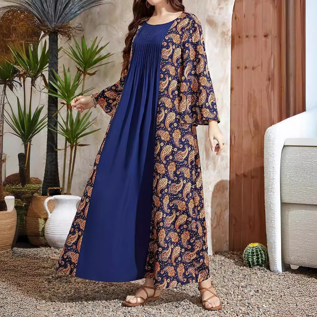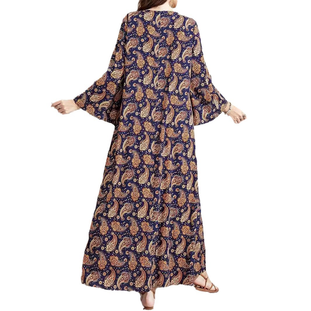| nameOriginal | D156# Middle East Women's Muslim Printed Dress Cross-border Europe and America Leisure Stitching Horn Sleeve dress Women |