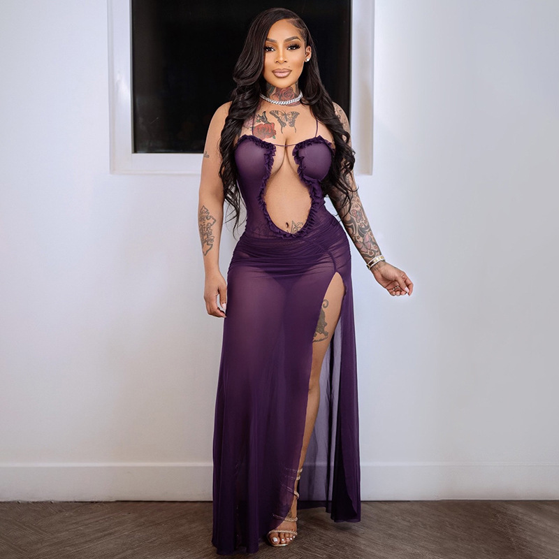 | nameOriginal | D24DS055 cross-border women's clothing 2024 new European and American style sling hollow lace pleated slit dress wholesale |