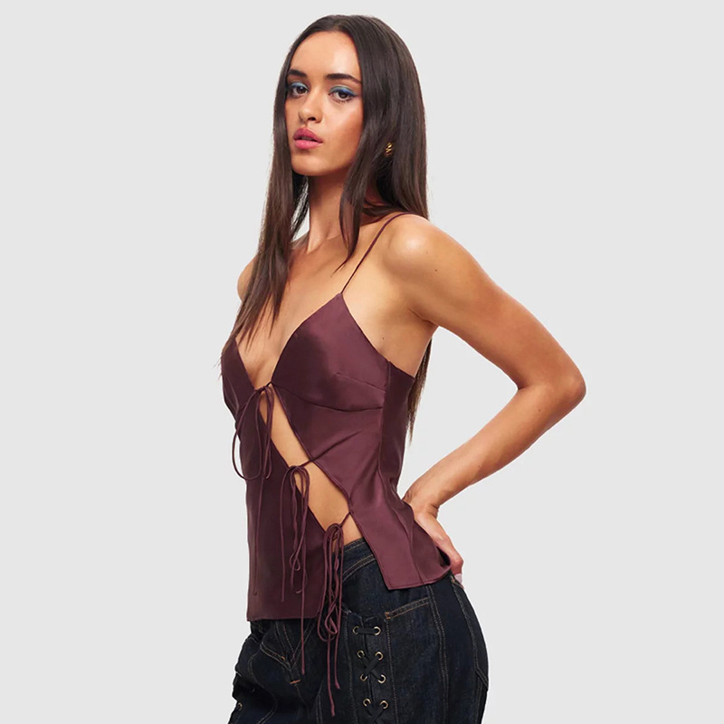 D24TP025 European and American women’s clothing 2024 Summer new solid color low-cut strap strap sexy waist top wholesale