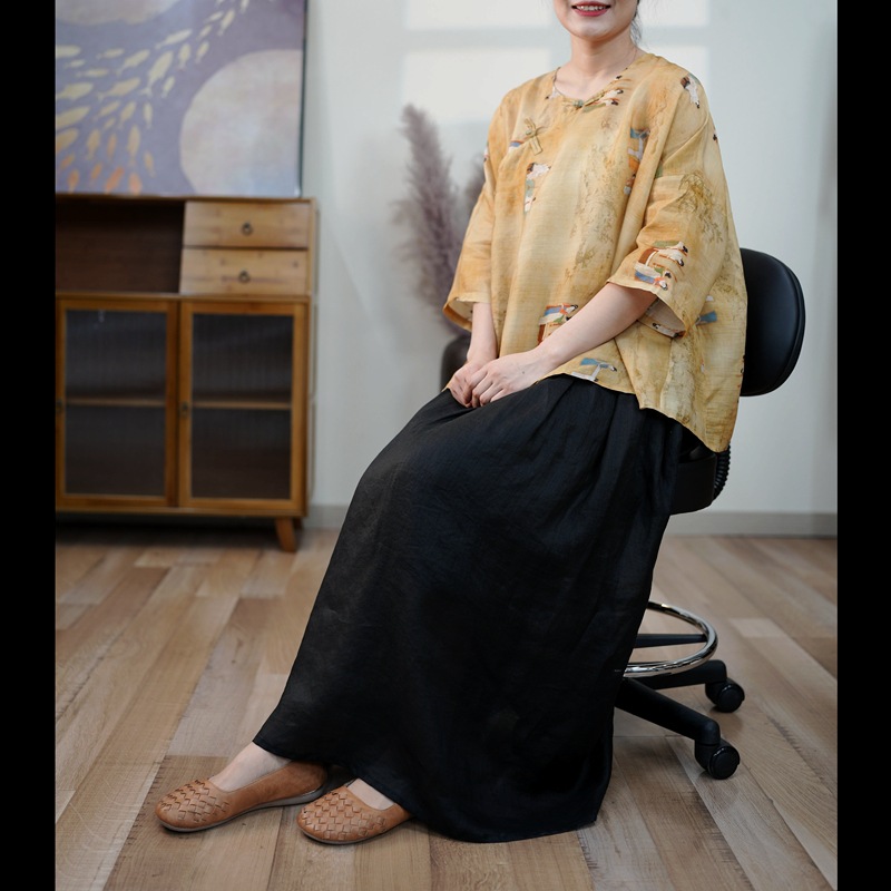 | nameOriginal | D9836 women's Ramie mid-length skirt with lining |
