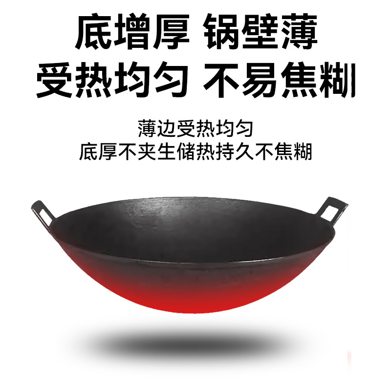 DA4K old-fashioned iron pot cooking pot double-ear household handmade firewood stove turtle pattern thickened traditional cast iron pot round bottom