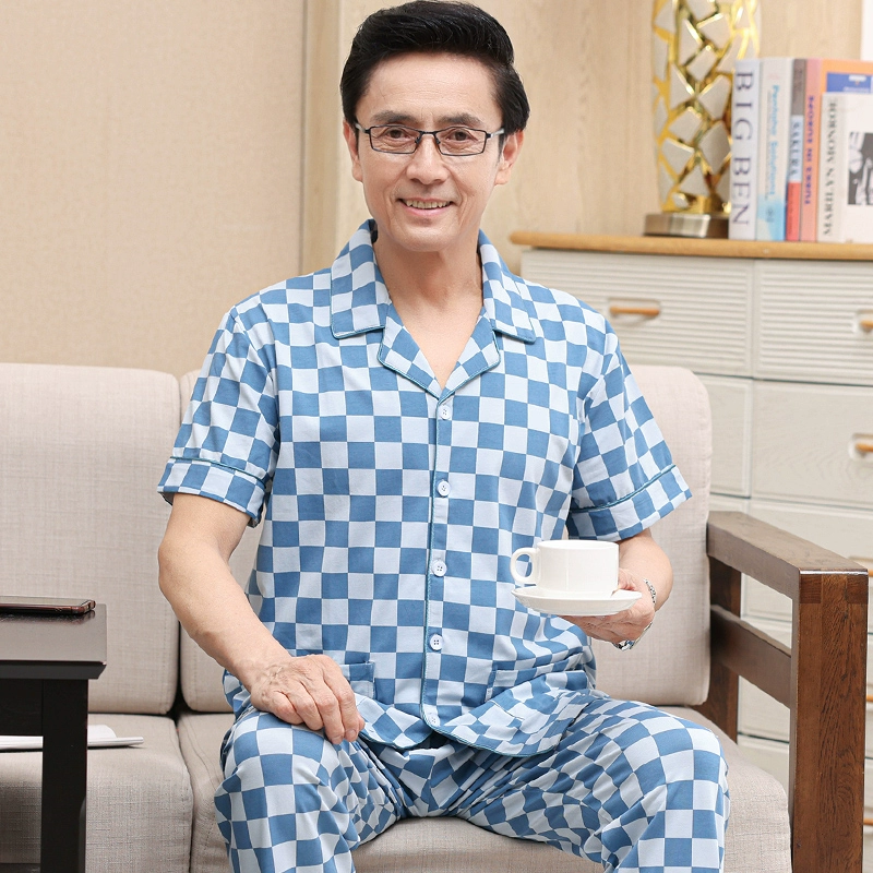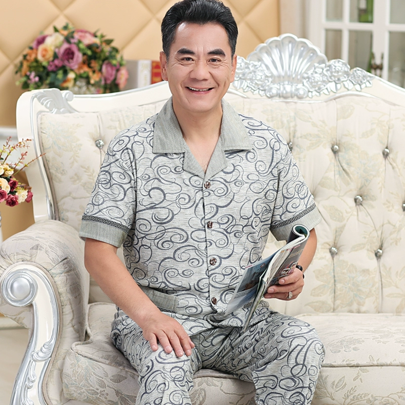 Dad Xia men's pure cotton half-sleeved senior suit pajamas